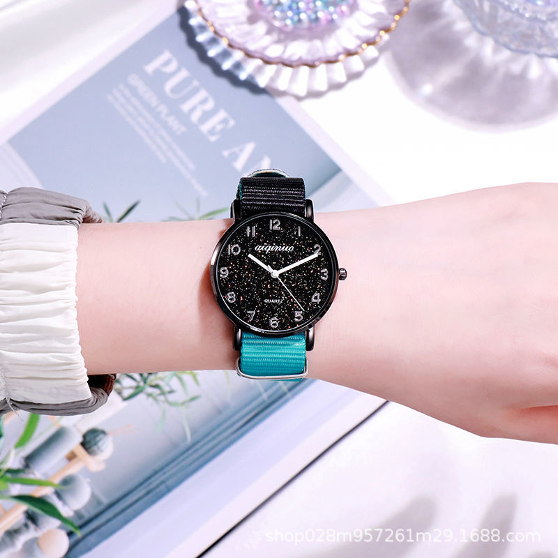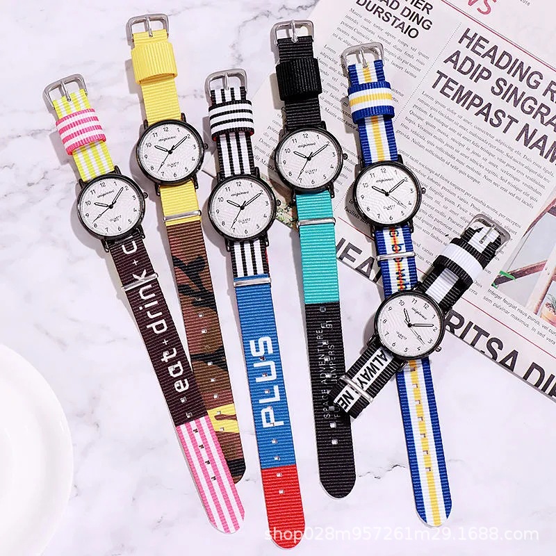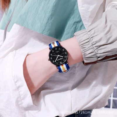 Ins gió dây vải xu hướng đồng hồ sinh viên đồng hồ cặp đơn giản và đa năng quạt văn học dây nylon đồng hồ nữ