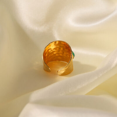 Ins Pháp thích hợp thiết kế vòng thép titan ba vòng đá tự nhiên màu xanh lá cây đặc biệt vòng phóng đại vòng thép không gỉ
