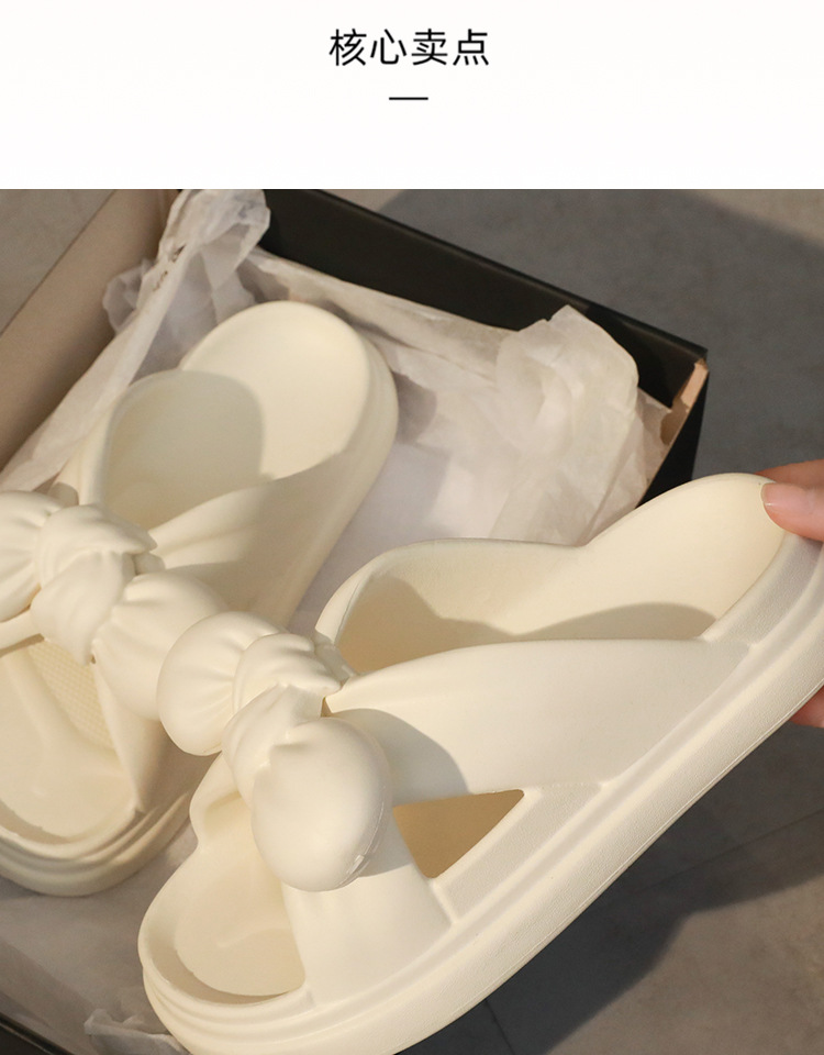 Ins Phong Cách Dày-Đế Dép Nữ Mùa Hè 2023 Cô Gái Mới Trái Tim Thắt Nơ Áo Khoác Ngoài Học Sinh Đi Biển Và Dép Bán Buôn