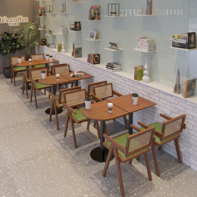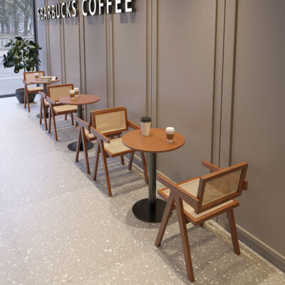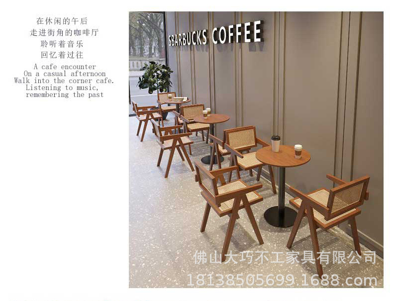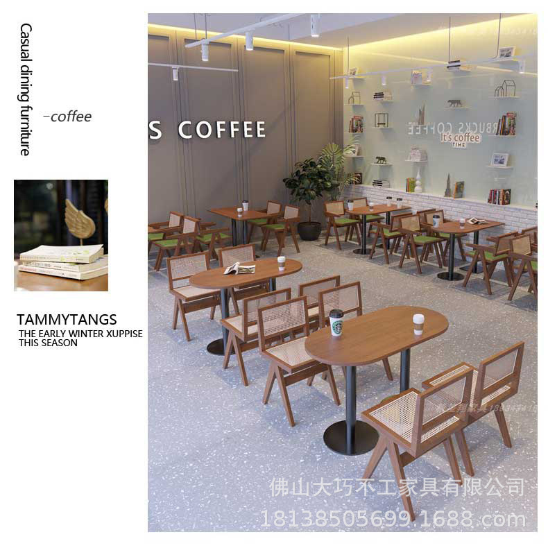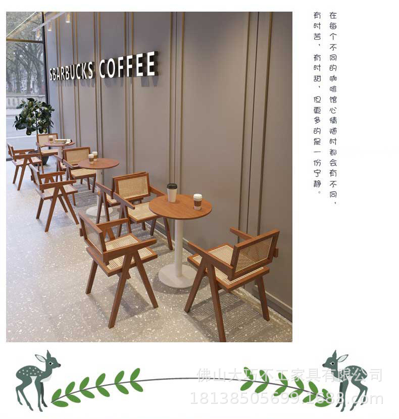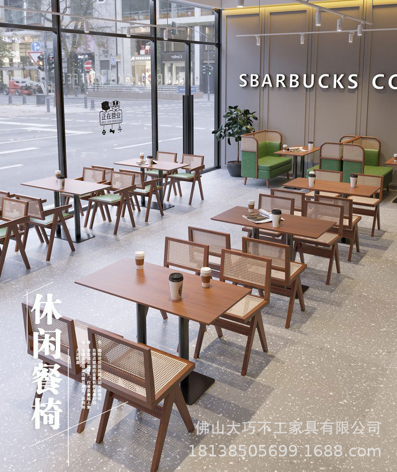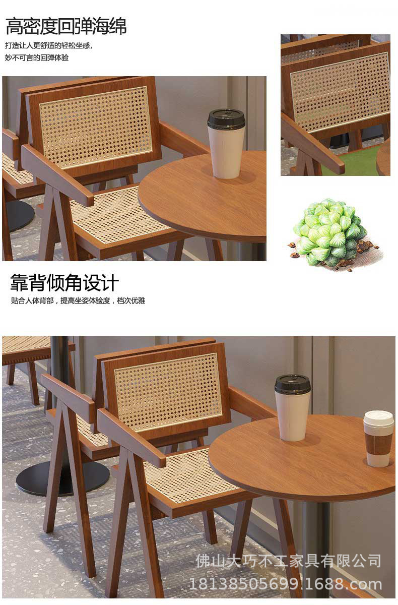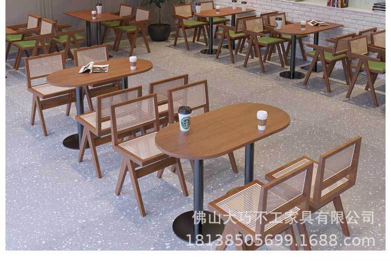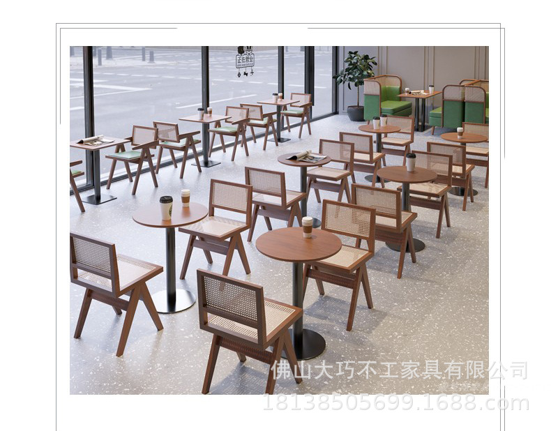 Internet nổi tiếng quán cà phê mây tráng miệng quán trà sữa Bàn tròn Nhật Bản ghế ăn bình thường chuỗi nhà hàng bàn ghế gỗ nguyên khối kết hợp