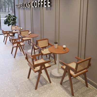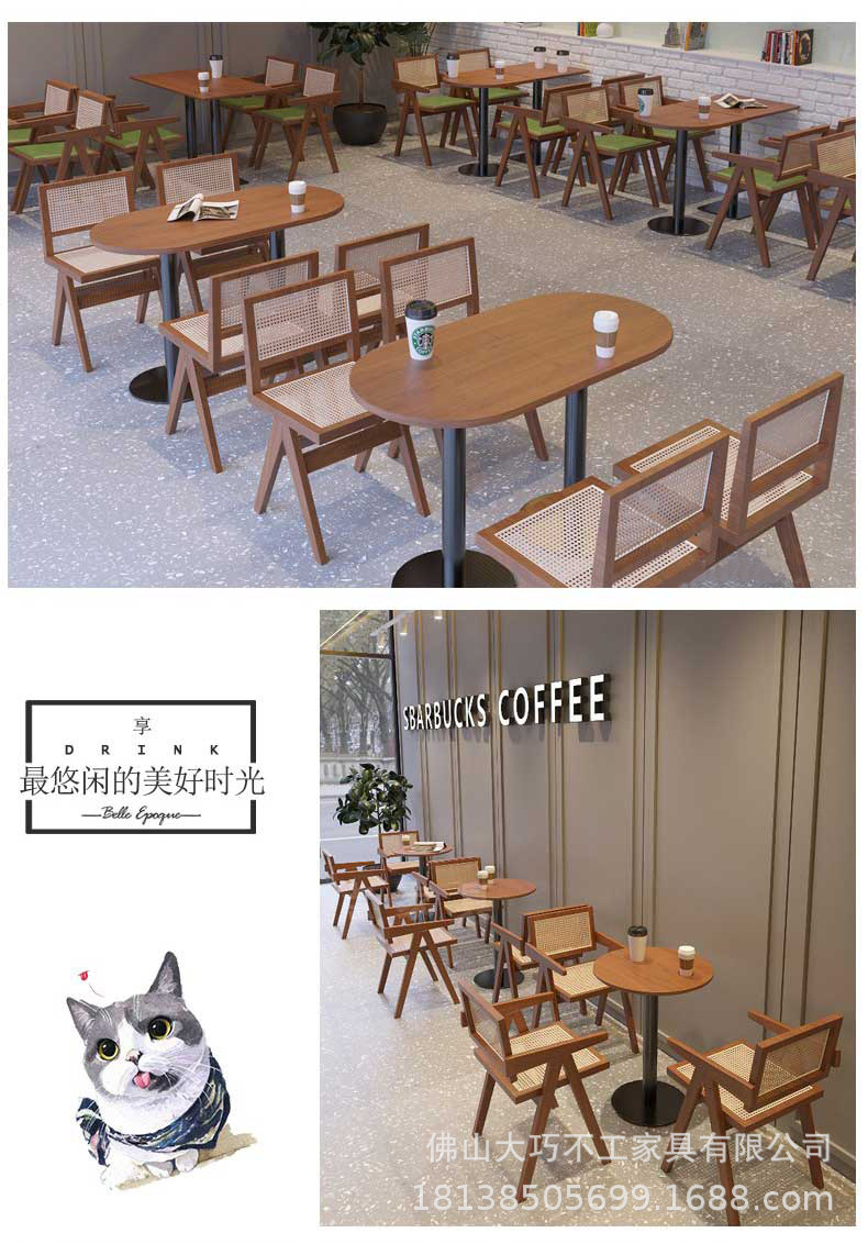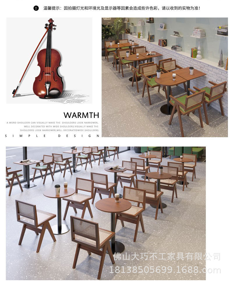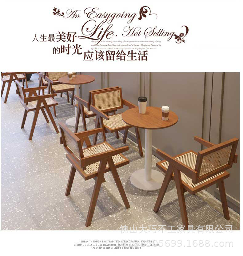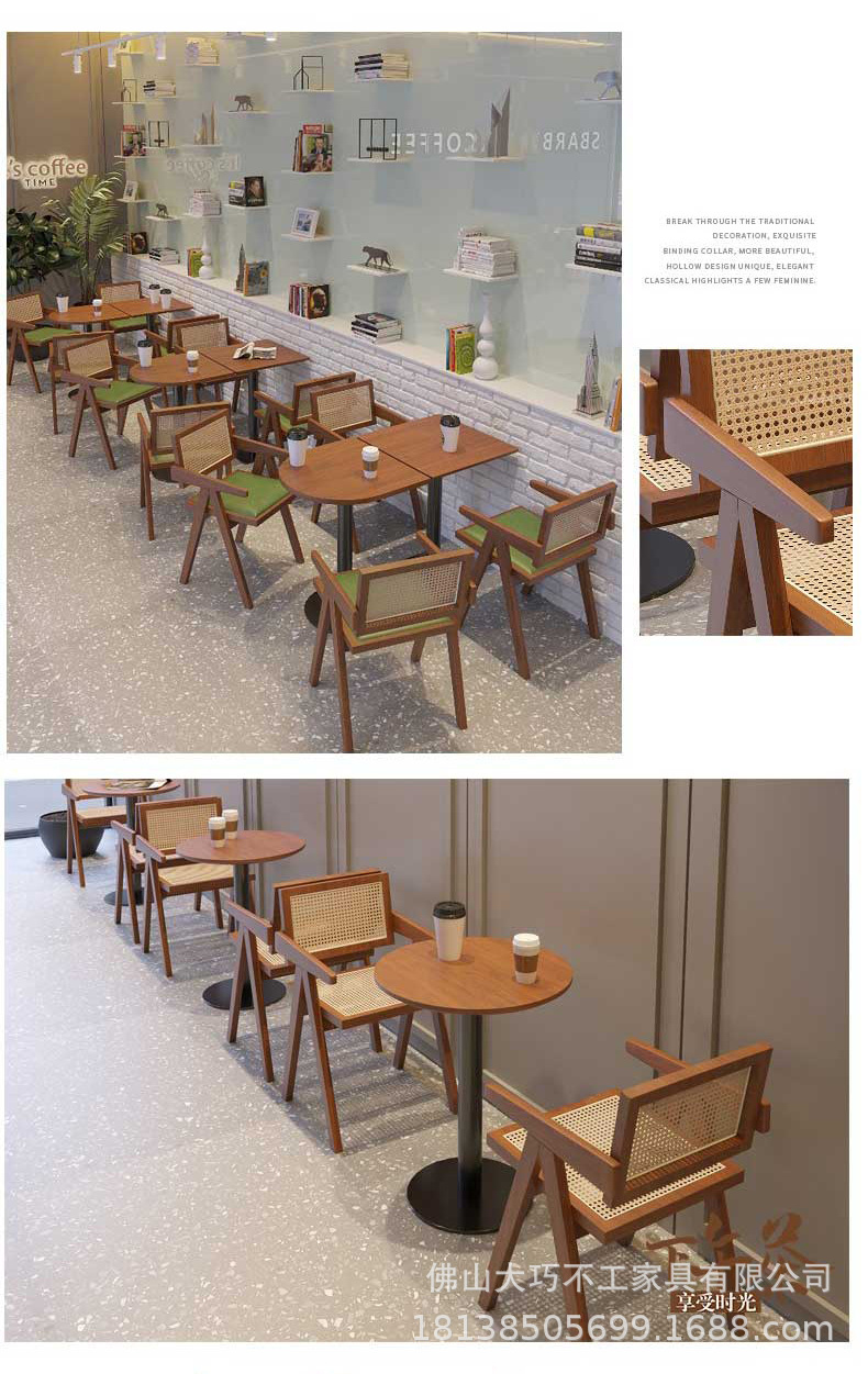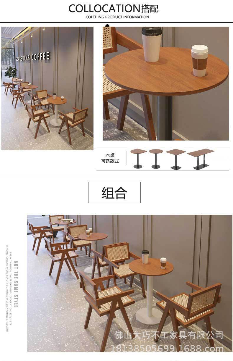 Internet nổi tiếng quán cà phê mây tráng miệng quán trà sữa Bàn tròn Nhật Bản ghế ăn bình thường chuỗi nhà hàng bàn ghế gỗ nguyên khối kết hợp