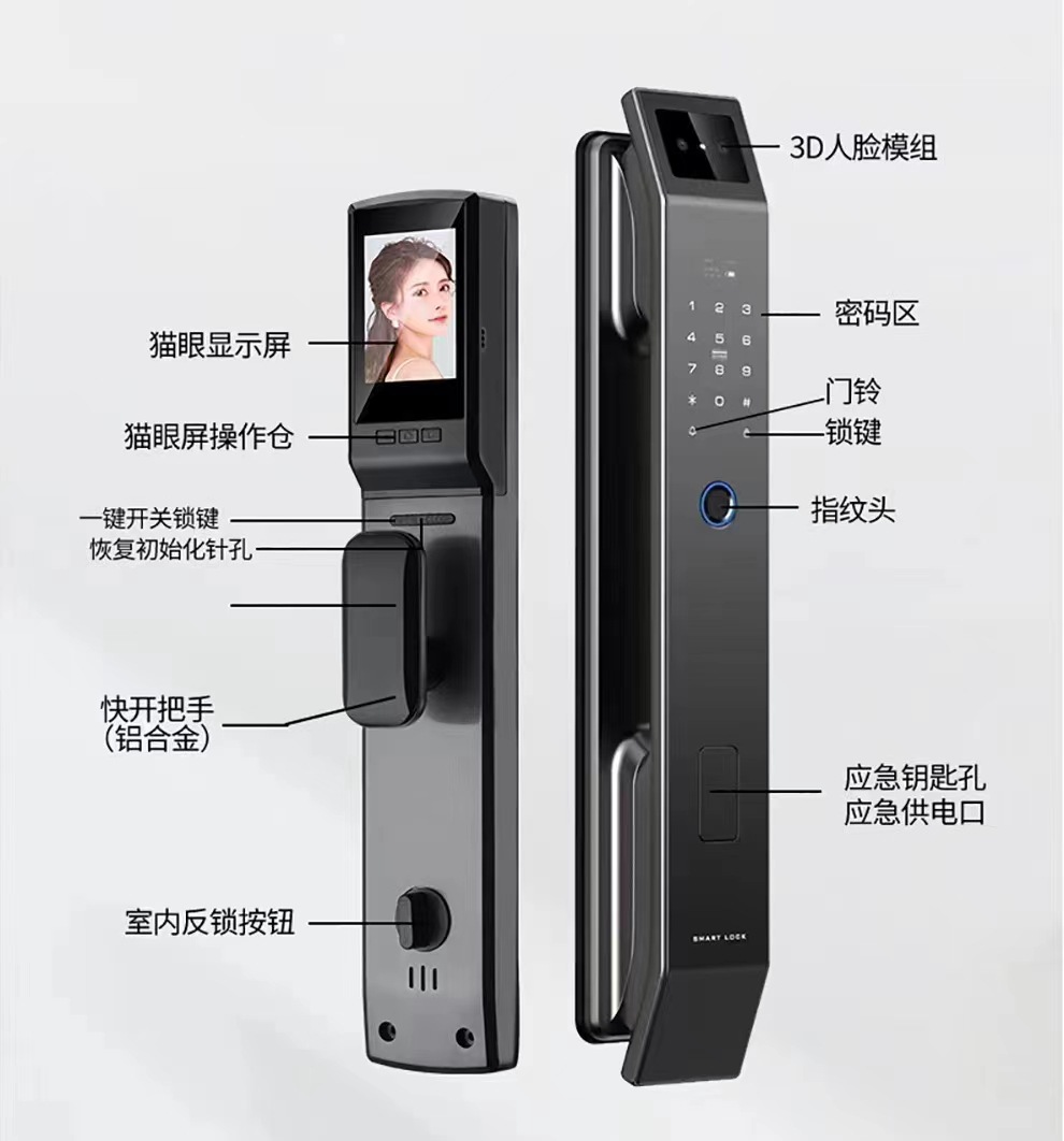 Internet nổi tiếng thoát nước nhận dạng khuôn mặt khóa vân tay khóa mật khẩu khóa điện tử cửa chống trộm trực quan khóa cửa thông minh mắt mèo