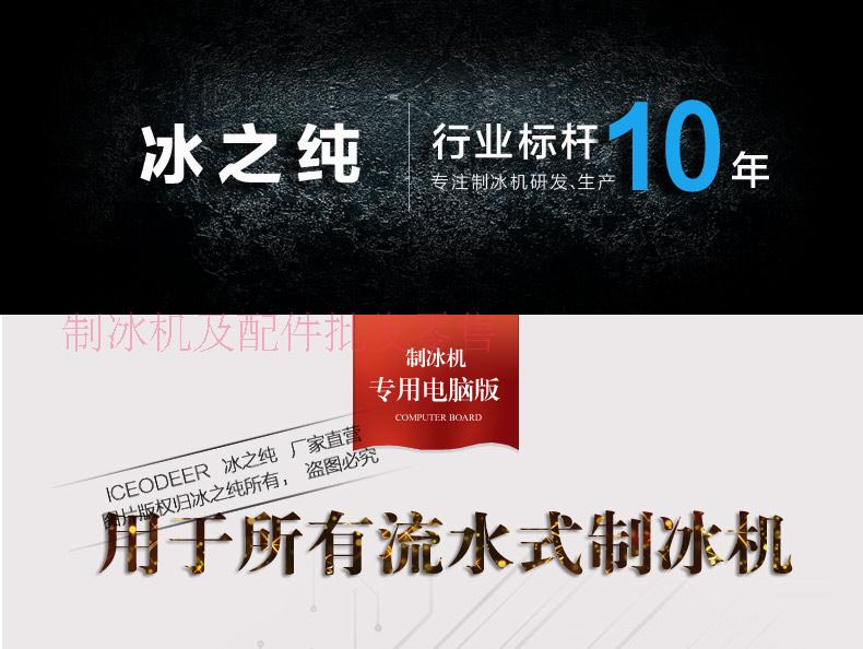 可用于市场上的大部分流水式制冰机,安装电脑板时要注意,先断开电源,然后要整理清楚。电脑板上的地线一定要有接地,更换时最好是整套更换,此般为全套板,主板保修一年,其他配件保修三个月。更换时最好请专业人员帮您更换。