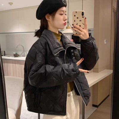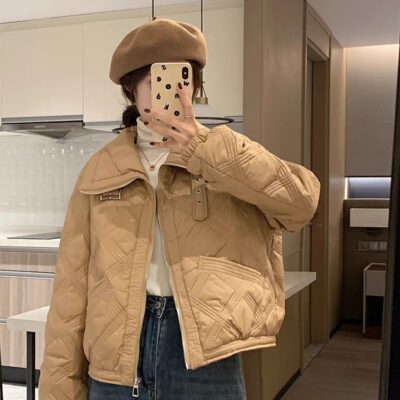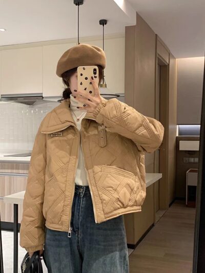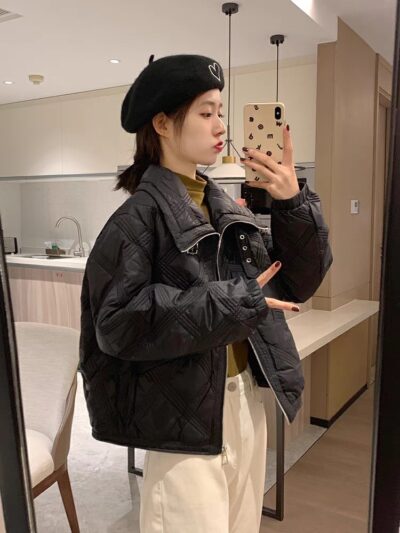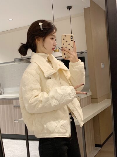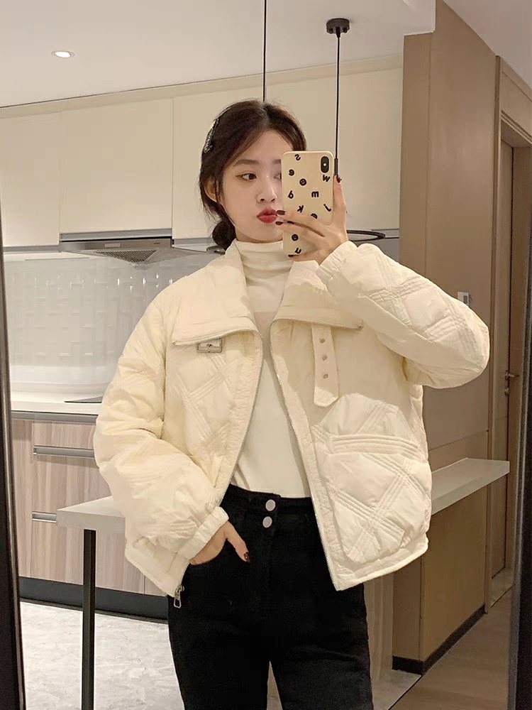 J05-Áo khoác thể thao hình thoi dáng ngắn mỏng nhẹ kiểu mới cho nữ dáng nhỏ áo khoác nam 90 trắng ya nhung