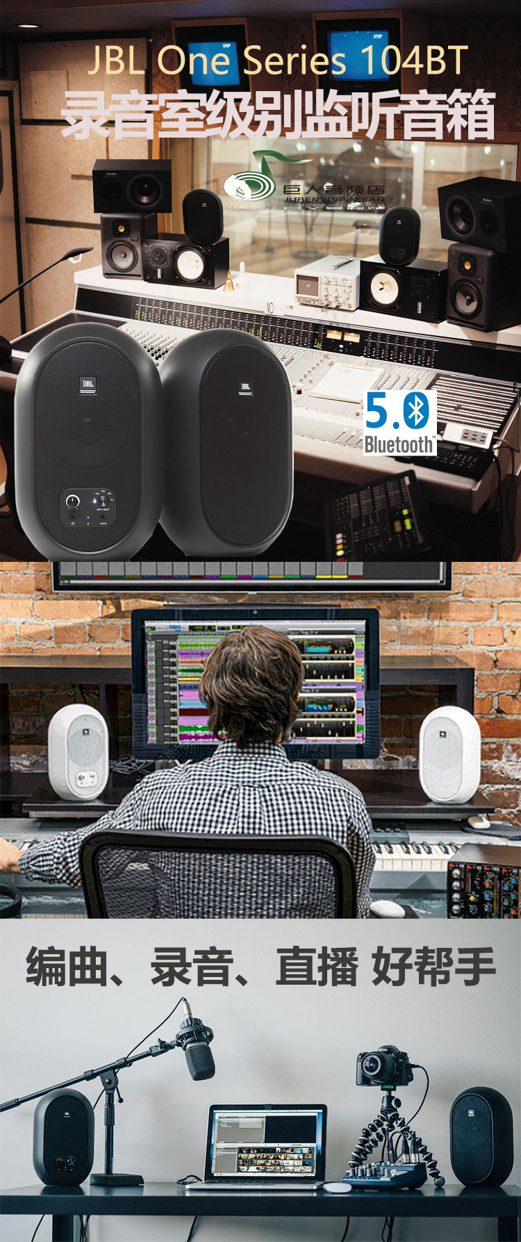 JBL 104BT máy tính để bàn bluetooth 4 inch loa máy tính xách tay đa phương tiện Màn hình hoạt động chuyên nghiệp Âm thanh HIFI