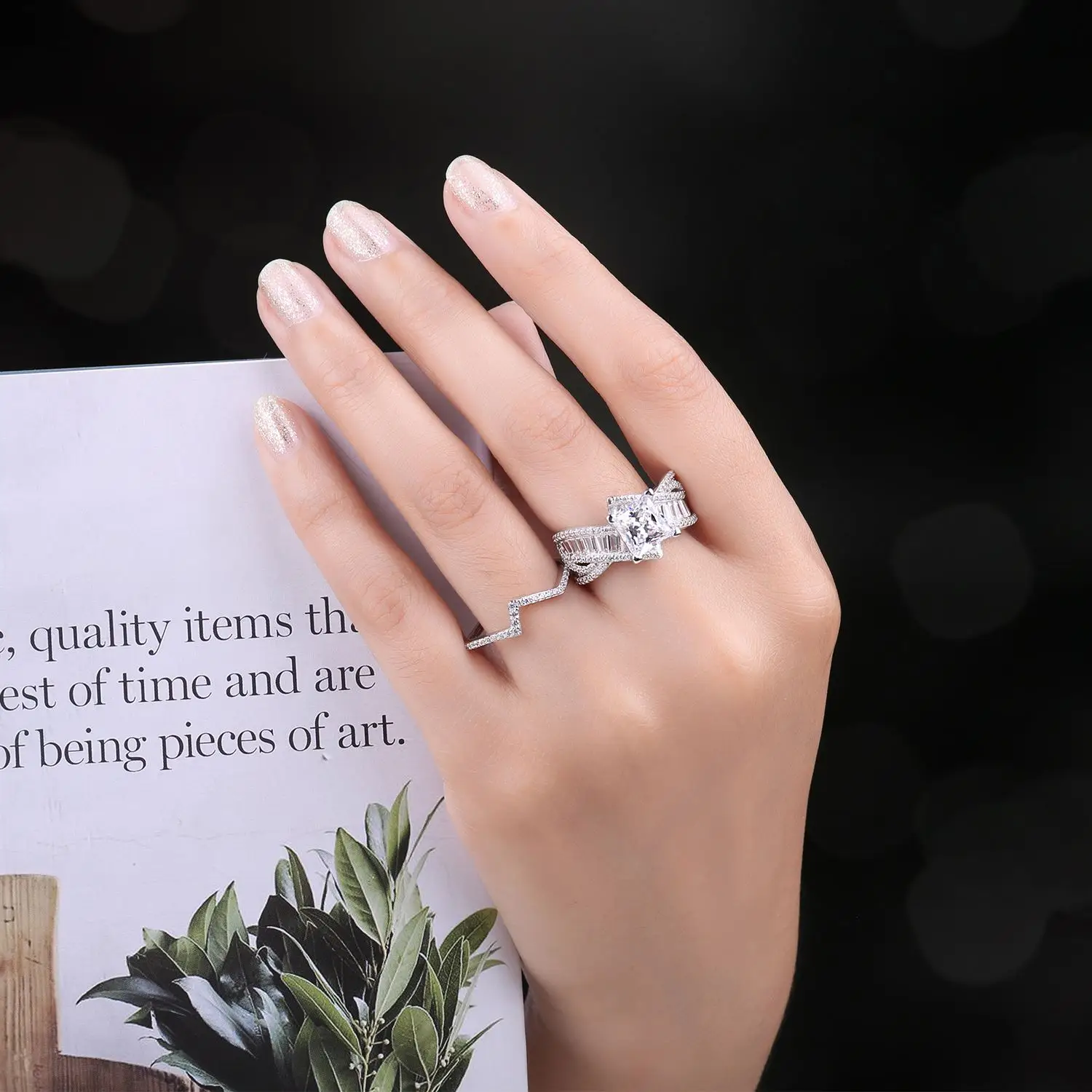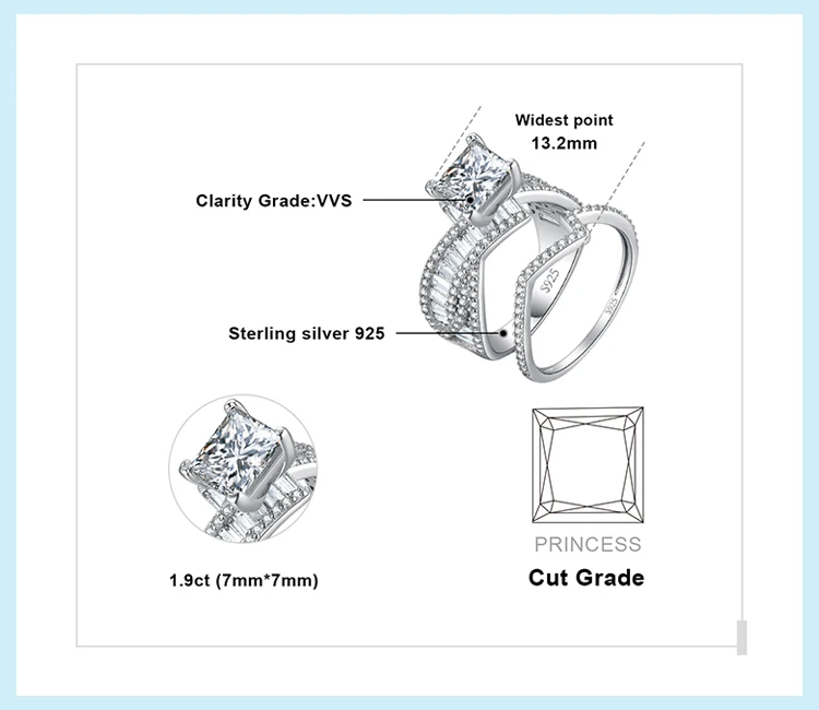 √ FIT ANY OCCASION: Add style to a basic look with these solid S925 solitaire ring for women. Anniversary ring shines even more by simulated diamond princess cut. 5A Square CZ embellished by other 5A cubic zirconia could wear to form a unique and exciting personality. Perfect for everyday wear for a statement-making look no matter the occasion. Make a dazzling addition to your jewelry collection!