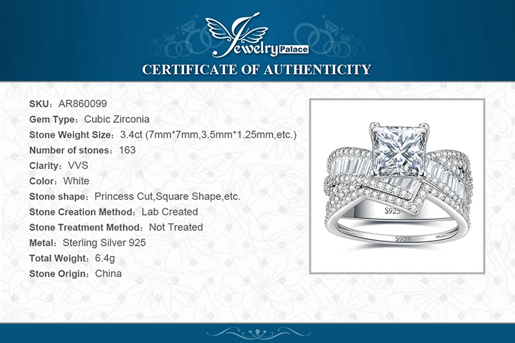 JewelryPalace Mới 2 Chiếc Chắc Chắn Bạc 925 Cưới Nhẫn Đính Hôn Cho Người Phụ Nữ 3.4ct Mô Phỏng Kim Cương AAAAA CZ Cô Dâu BộGiấy chứng nhận:không Trọng lượng sản phẩm:6,4g is_customized:Không Đá mặt:Kim loại zircon Tem:925,Hình dạng Sterlinghoa văn:Hình học Loại cài đặt:Ngạnh Kiểu cài đặt:Cổ điển Số mô hình:AR@a01#860099 Loại nhẫn:Bộ cô dâu Dịp:Đám cưới Loại kim loại: bạc Đá chính: Zircon Giới tính: Phụ nữ Tên thương hiệu: JewelryPalace Xuất xứ: Trung Quốc đại lục Mỹ hoặc Thời trang: Đẹp Loại sản phẩm: Nhẫn Loại kim loại: Bạc 925 Tem kim loại: S925 Chất liệu: Bạc 925 nguyên khối / Đá quý Cắt: Công chúa Cắt đá quý Màu sắc: Trắng VVS AAAAA Thiết kế: Đám cưới Đính hôn Dịp: Tiệc/Đám cưới/Đính hôn/Kỷ niệm/Sinh nhật/Quà tặng hàng ngày dành cho:Phụ nữ/Quý cô/Nữ/Mẹ/Cô gái/Người bạn/Bạn gái