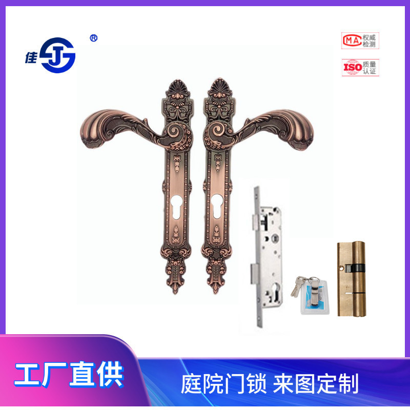 Jiagu T02 cung cấp trực tiếp theo phong cách Châu Âu tay cầm khóa hợp kim kẽm trong nhà cửa gỗ cửa vườn phượng đuôi bằng đồng tay cầm khóa
