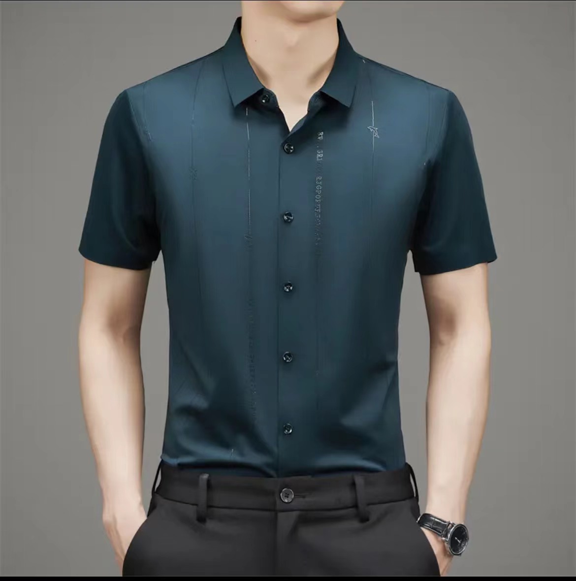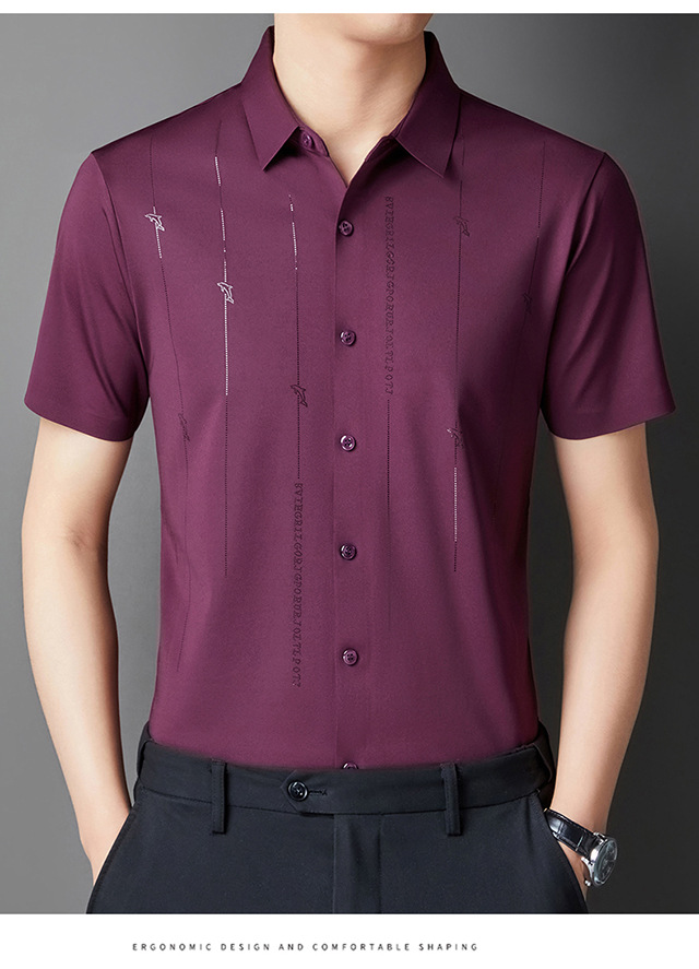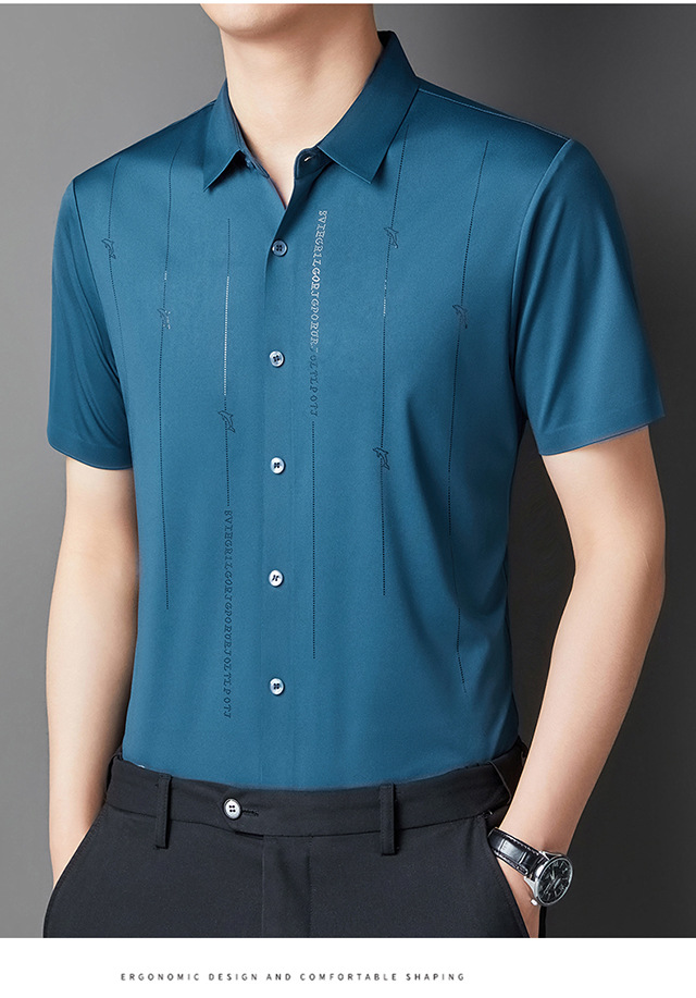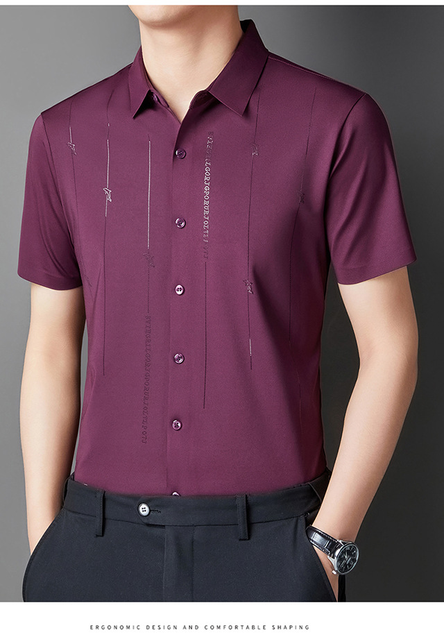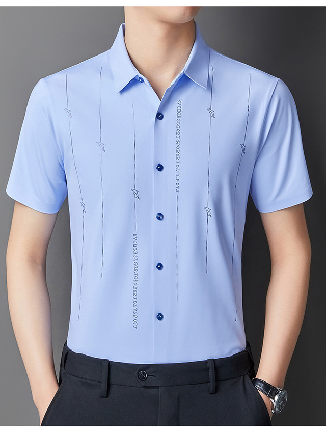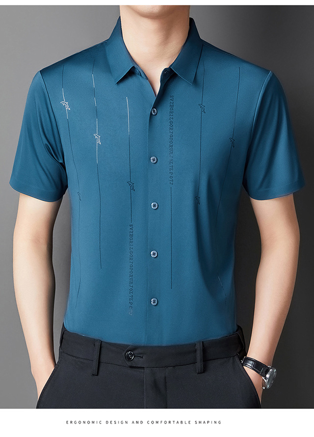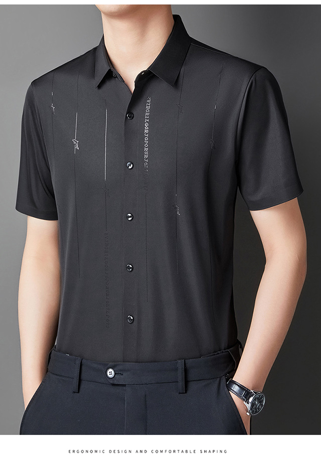 Jianba cùng phong cách mùa hè áo sơ mi nam ngắn tay không vết áo sơ mi một mảnh chống nhăn không chứa sắt đàn hồi cao nửa tay