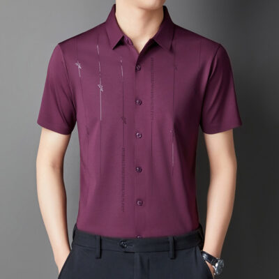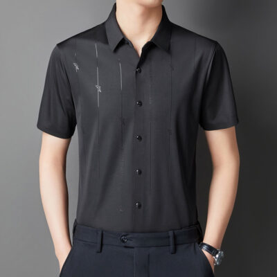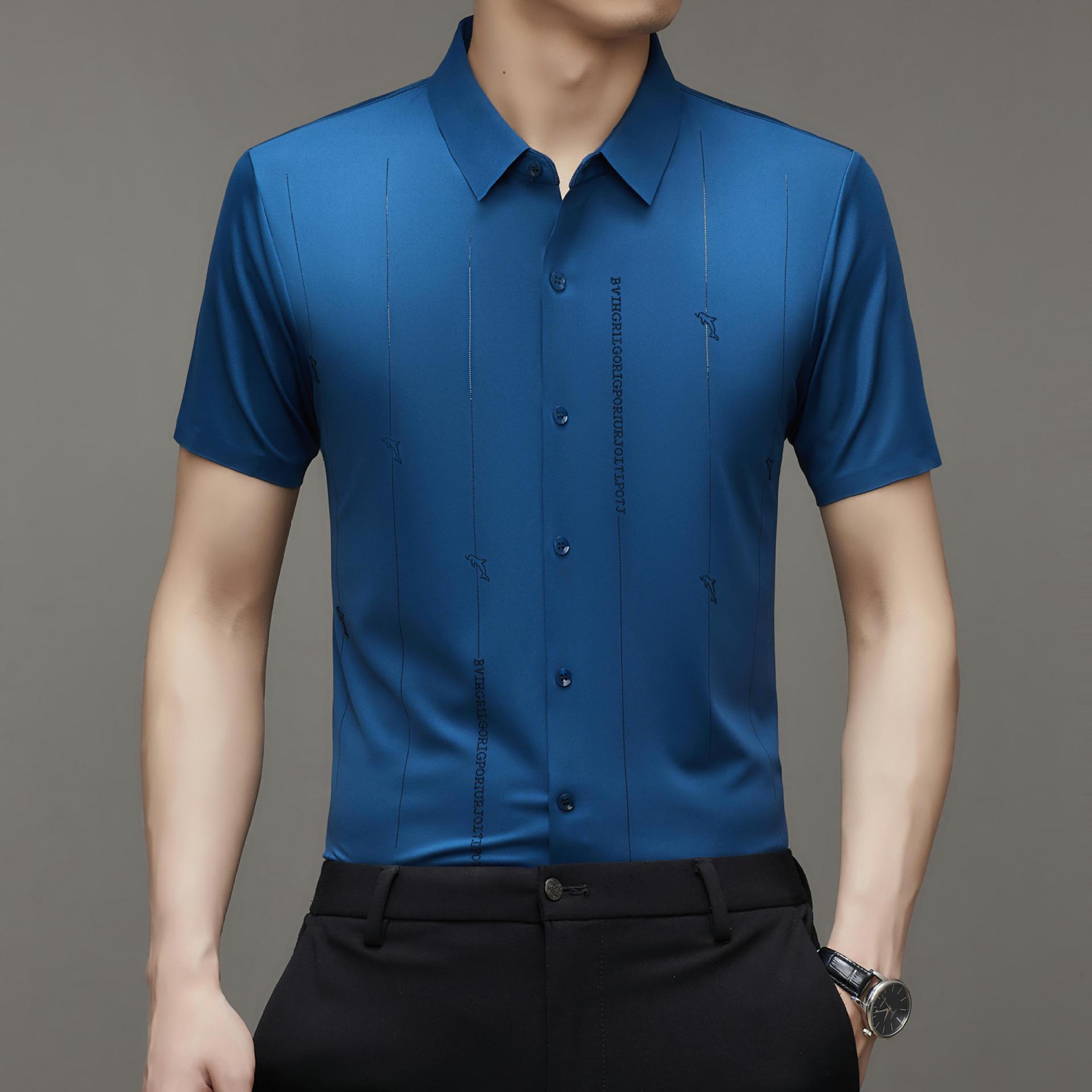 Jianba cùng phong cách mùa hè áo sơ mi nam ngắn tay không vết áo sơ mi một mảnh chống nhăn không chứa sắt đàn hồi cao nửa tay