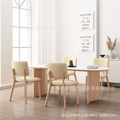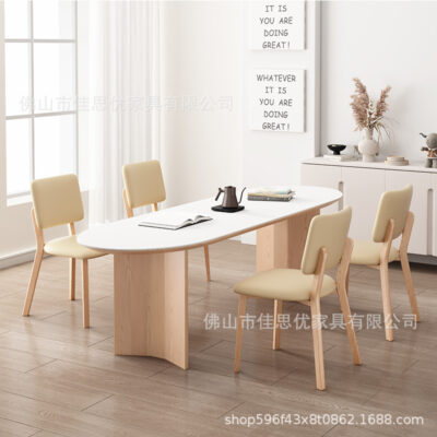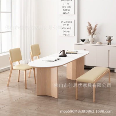 Jiasiyou Log Wind Phiến Bàn Ăn Gỗ Chắc Chắn Wabi Sabi Phong Cách Hiện Đại Đơn Giản Gia Đình Hình Bầu Dục Bàn Ghế Kết Hợp