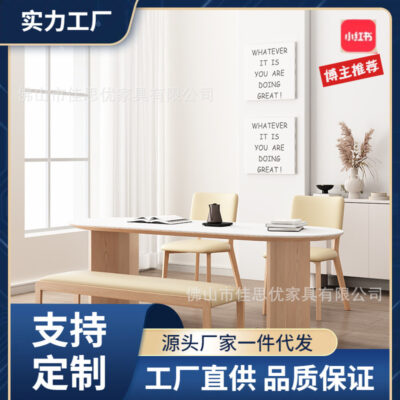 Jiasiyou Log Wind Phiến Bàn Ăn Gỗ Chắc Chắn Wabi Sabi Phong Cách Hiện Đại Đơn Giản Gia Đình Hình Bầu Dục Bàn Ghế Kết Hợp