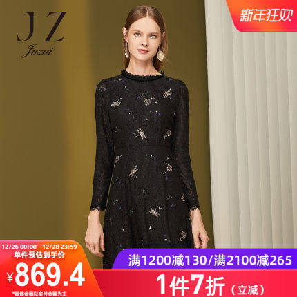 JUZUI / Fengzi chính thức cửa hàng flagship 2019 mùa đông mới thời trang áo ren thêu ren midi nữ