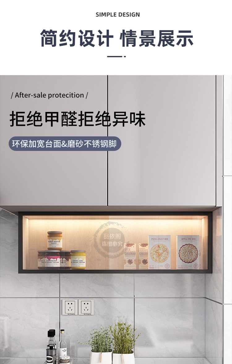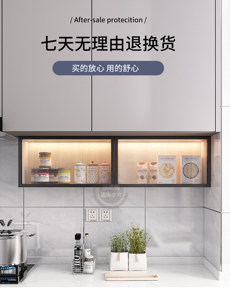 ①此款吊柜安装可分为打孔和免打孔,要根据客户墙面决定,瓷砖墙支持免打孔安装,其他墙面一律需要打孔安装,下单请备注墙面瓷砖或非瓷砖。我们会发适配墙面的配件,无备注的默认发免打孔配件。