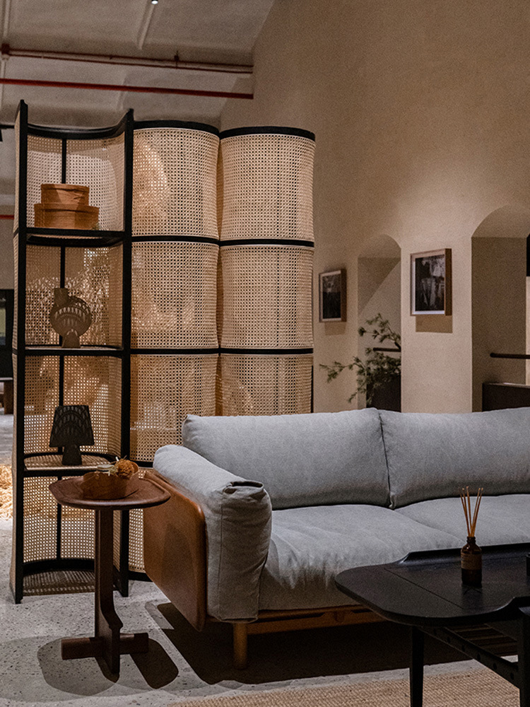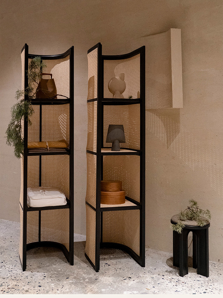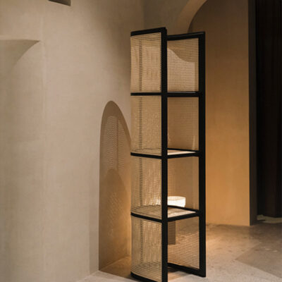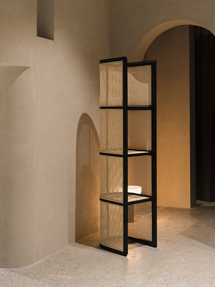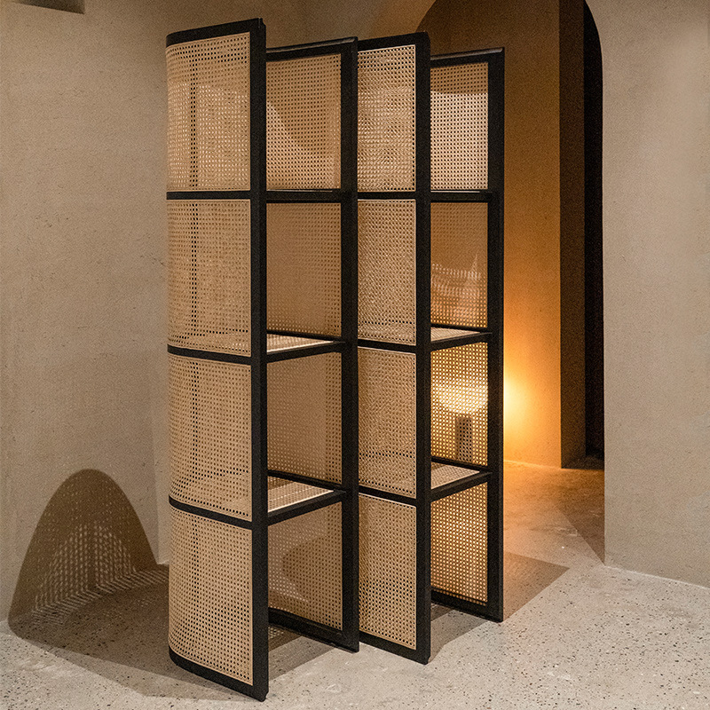 Kệ mây đen căn hộ nhỏ phòng khách nhiều tầng giá sách cao từ trần đến sàn phong cách wabi sabi tủ góc nhà giá đỡ trưng bày bằng gỗ nguyên khối