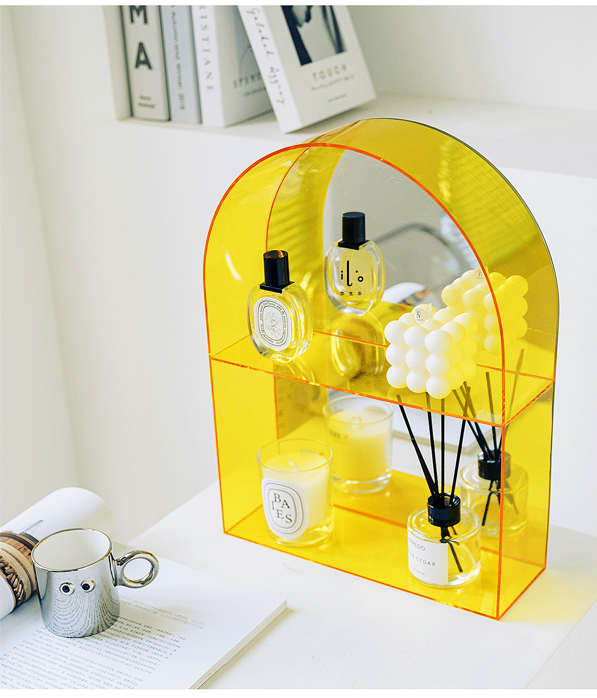 Kệ nhựa hình vòm để nước hoa, mỹ phẩm.