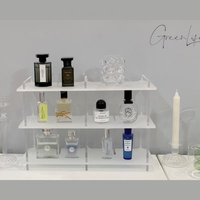 Kệ nhựa trong suốt lưu trữ đồ dùng, mỹ phẩm, nước hoa.