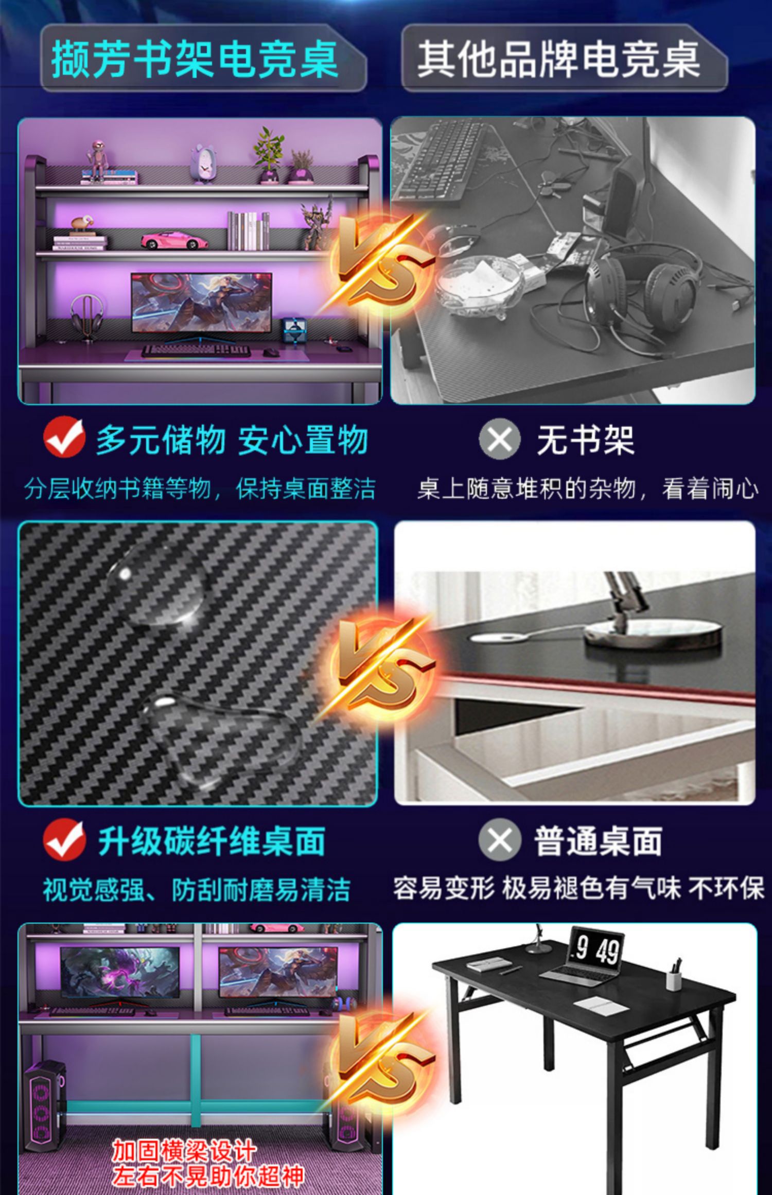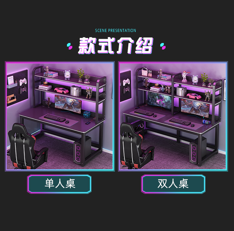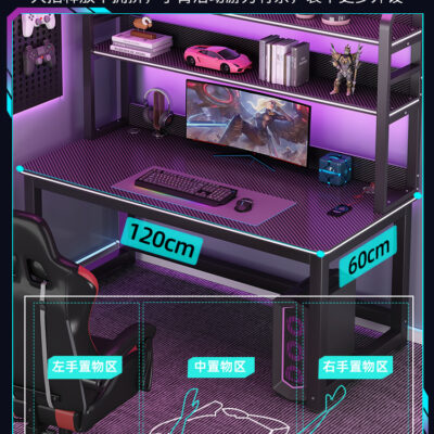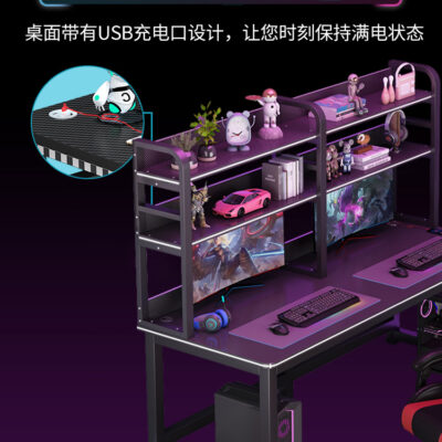 Kệ sách bàn máy tính tích hợp bàn đôi đơn giản bàn làm việc tại nhà sợi carbon bàn game bộ bàn ghế chơi game