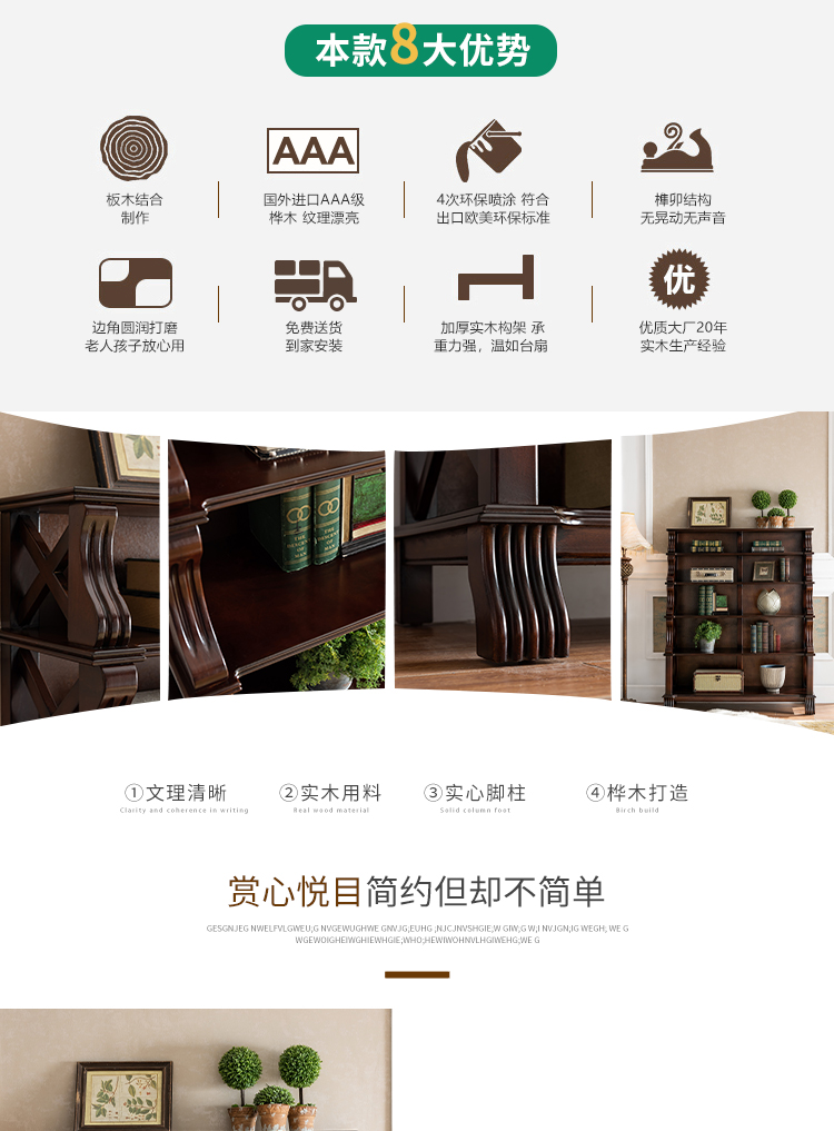 Kệ sách gỗ nguyên khối kiểu Mỹ Kệ kiểu Châu Âu Tủ sách màu óc chó Tủ trưng bày Tủ báo kiểu Mỹ Tủ sách trắng đốm