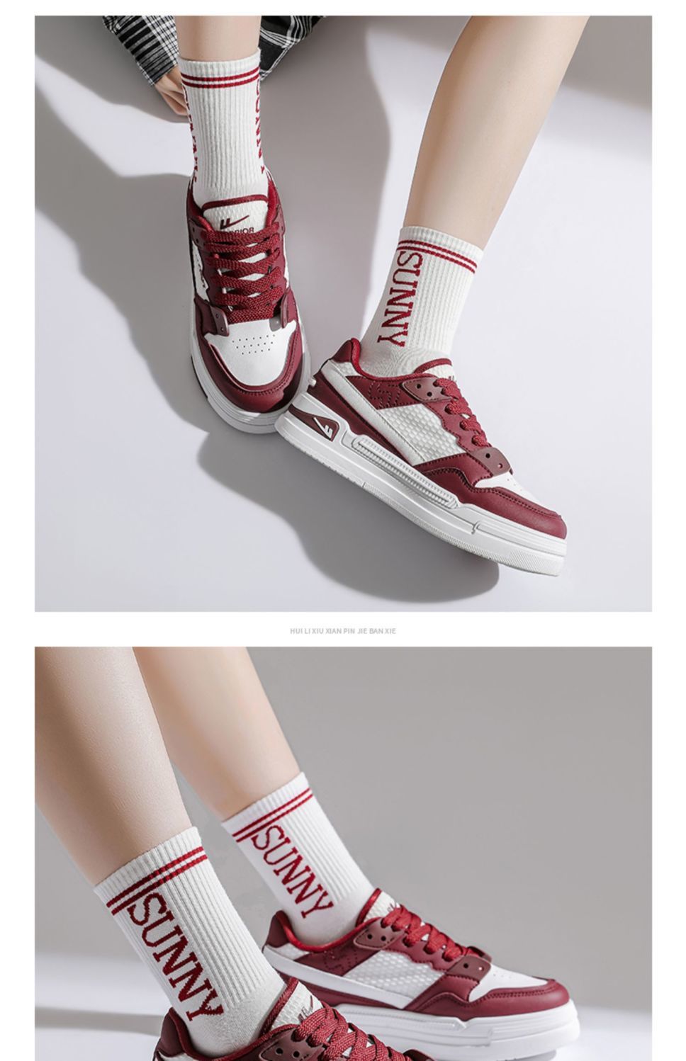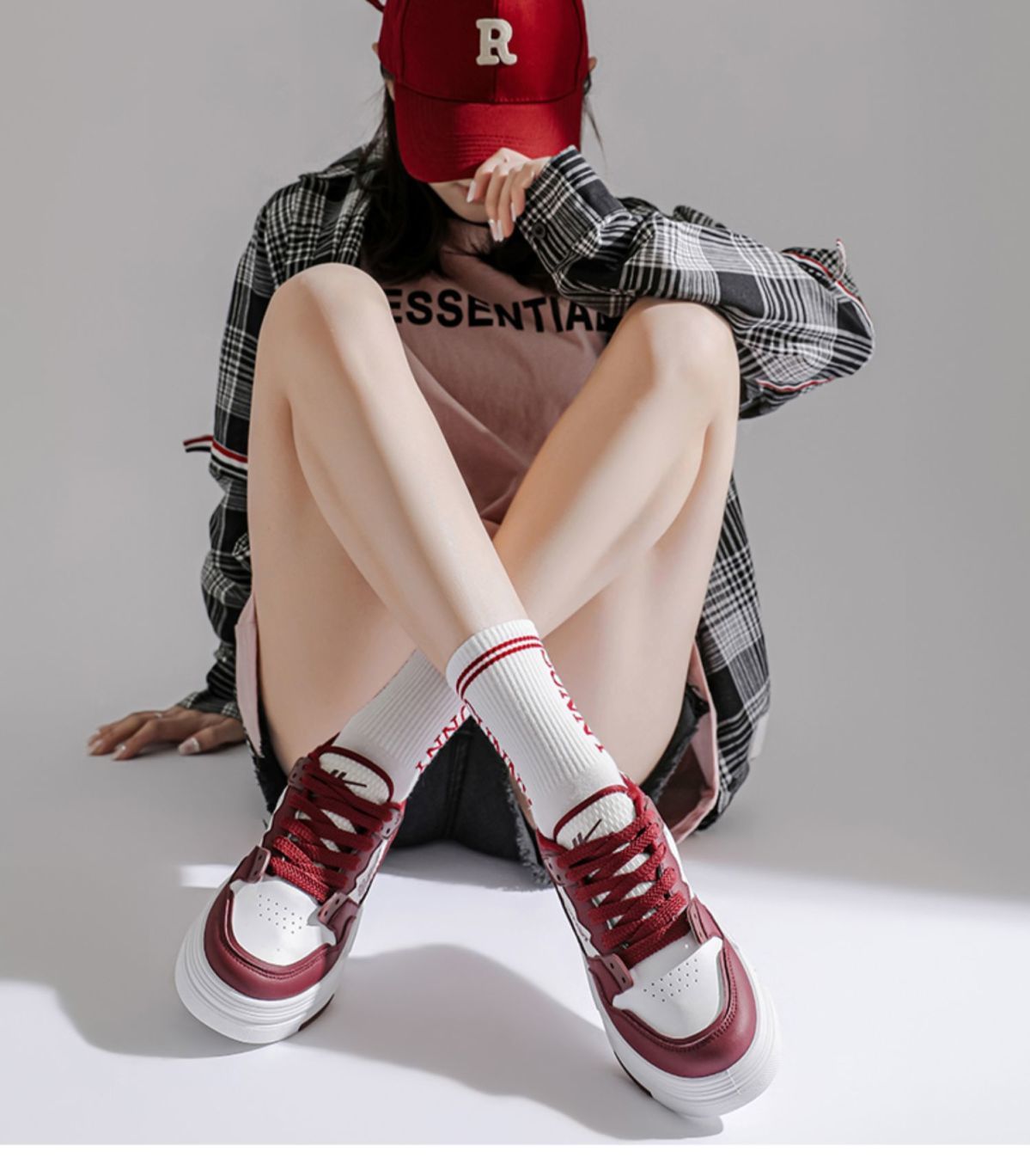 Kéo lại giày nữ giày lưới nhỏ màu đỏ trắng 2023 mùa hè mới tất cả các trận đấu giày đỏ thông thường tăng chiều cao giày đế dày đế dày nữ