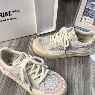 Kéo lại mùa hè 2023 giày thông thường mới phù hợp với tất cả các trận đấu in giày vải cổ thấp phiên bản Hàn Quốc giày thời trang nữ phong cách retro Hồng Kông