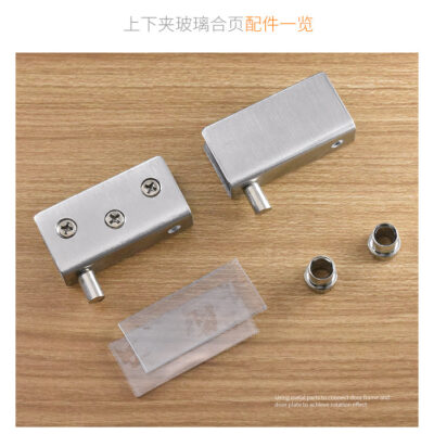 Kẹp trên và dưới bằng thép không gỉ, trục cửa kính, bản lề cửa tủ, tủ trưng bày, bản lề cửa bản lề không có lỗ được tôi luyện không khung