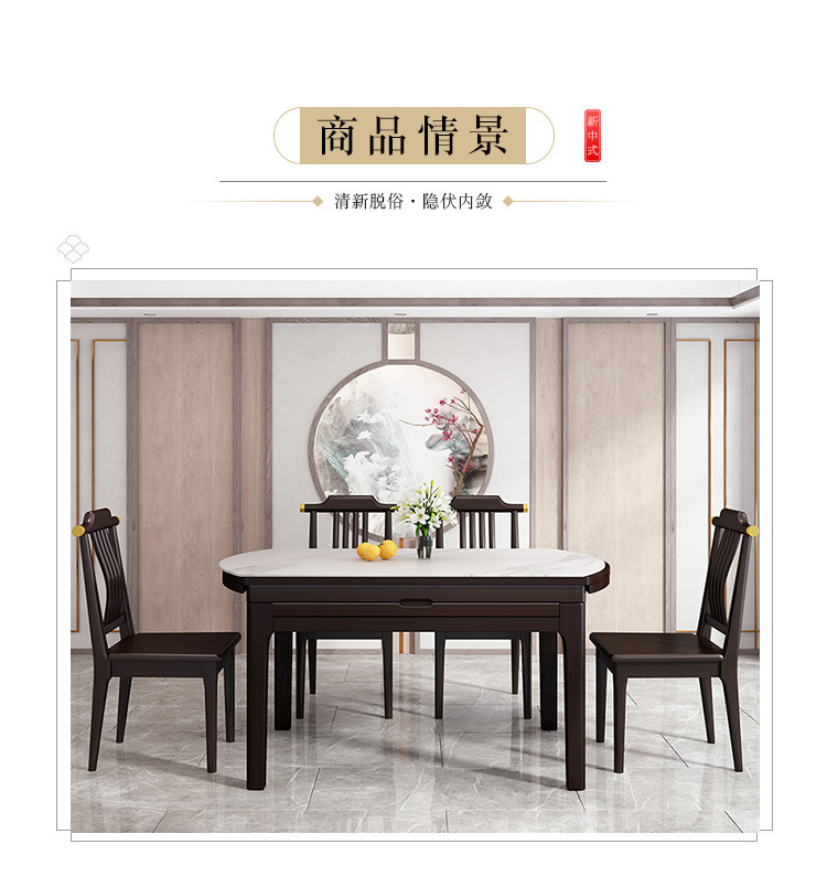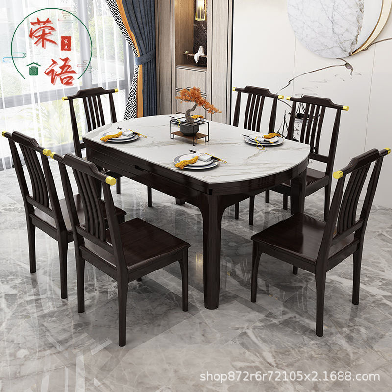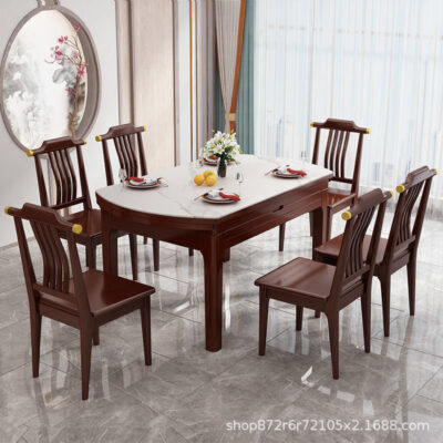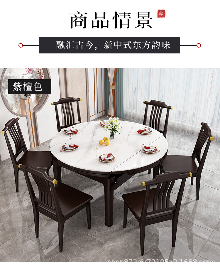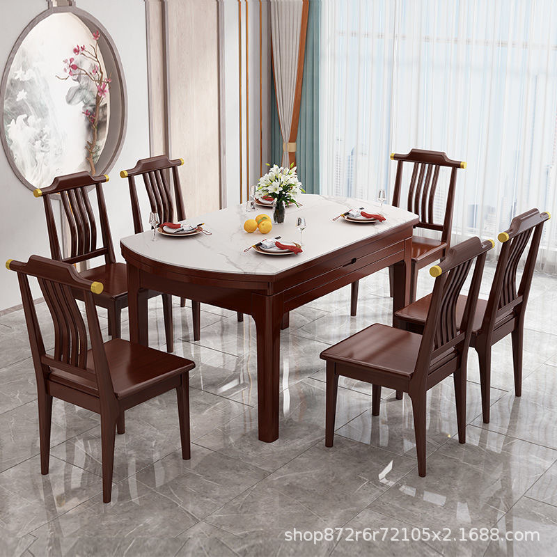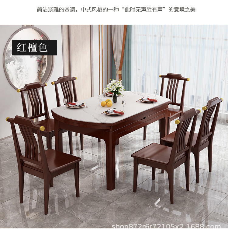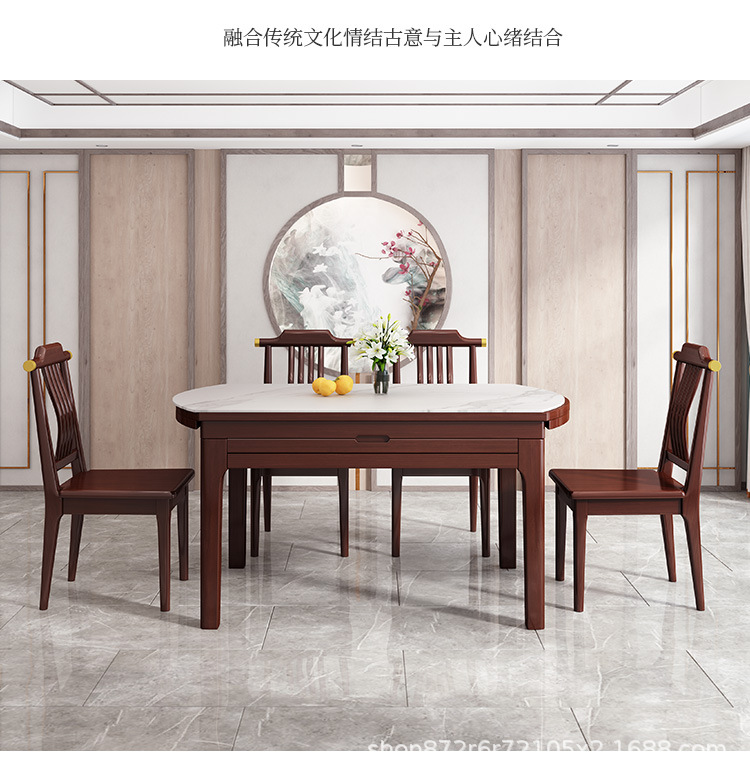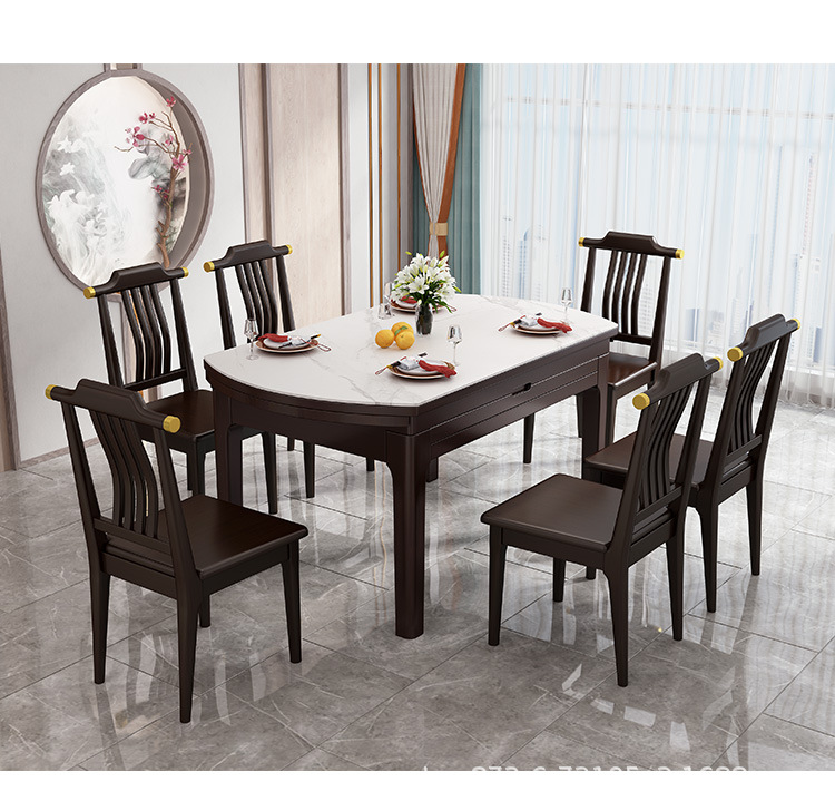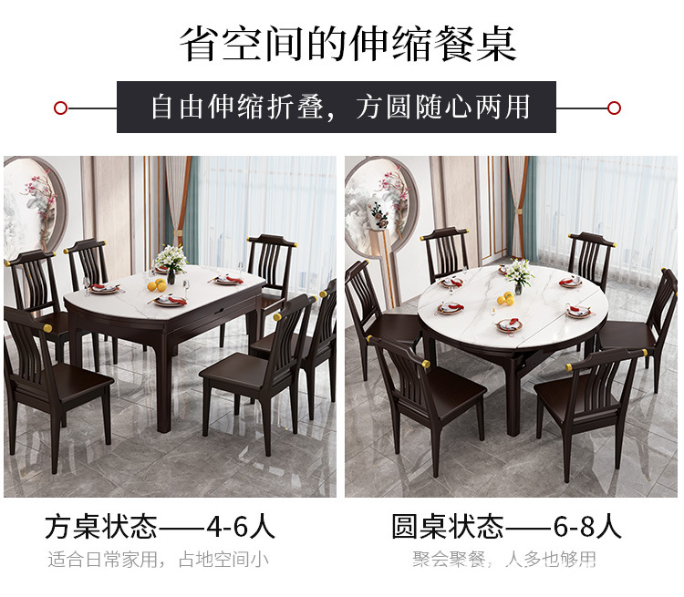 Kết hợp bàn ghế ăn bằng gỗ nguyên khối kiểu Trung Quốc mới có thể thu vào, gấp tròn, bàn ăn bằng đá tròn, căn hộ nhỏ, vuông, tròn, sử dụng kép