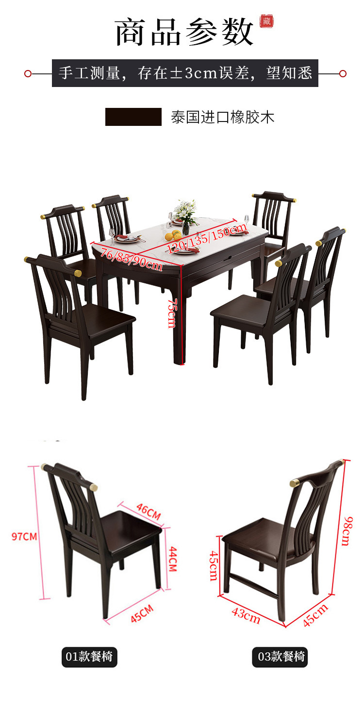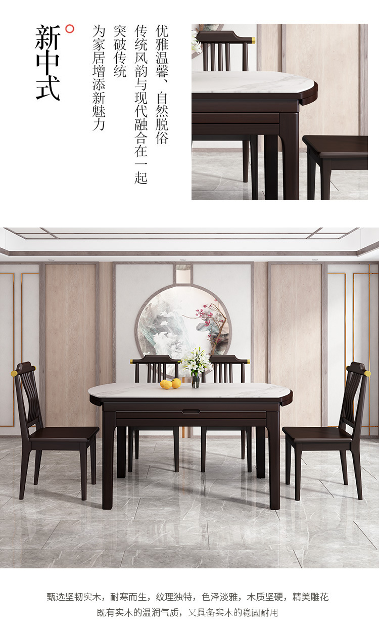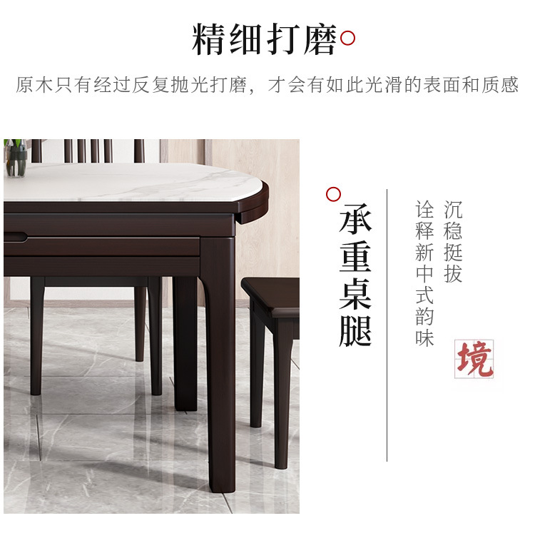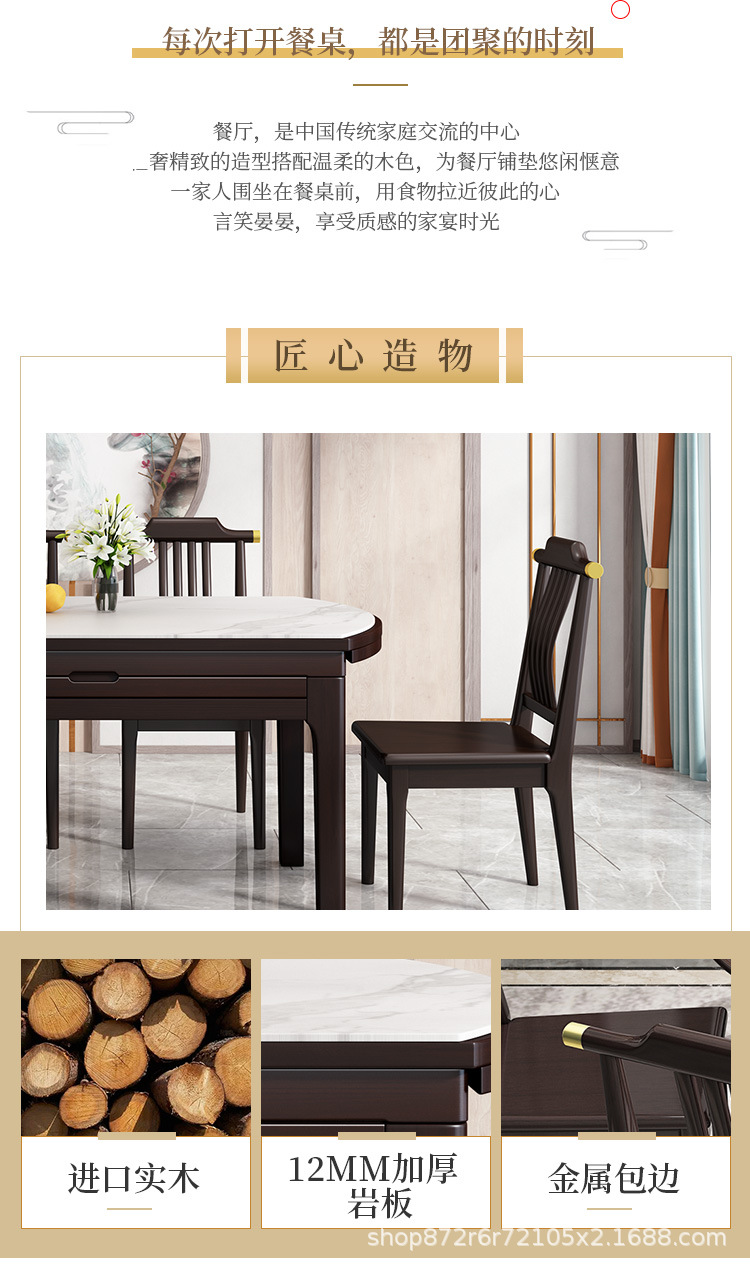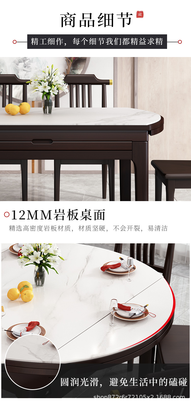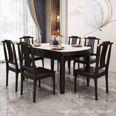 Kết hợp bàn ghế ăn bằng gỗ nguyên khối kiểu Trung Quốc mới có thể thu vào, gấp tròn, bàn ăn bằng đá tròn, căn hộ nhỏ, vuông, tròn, sử dụng kép