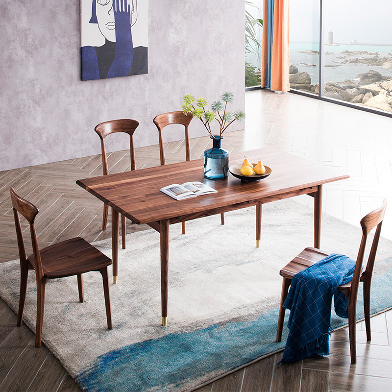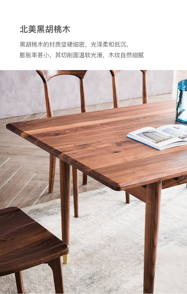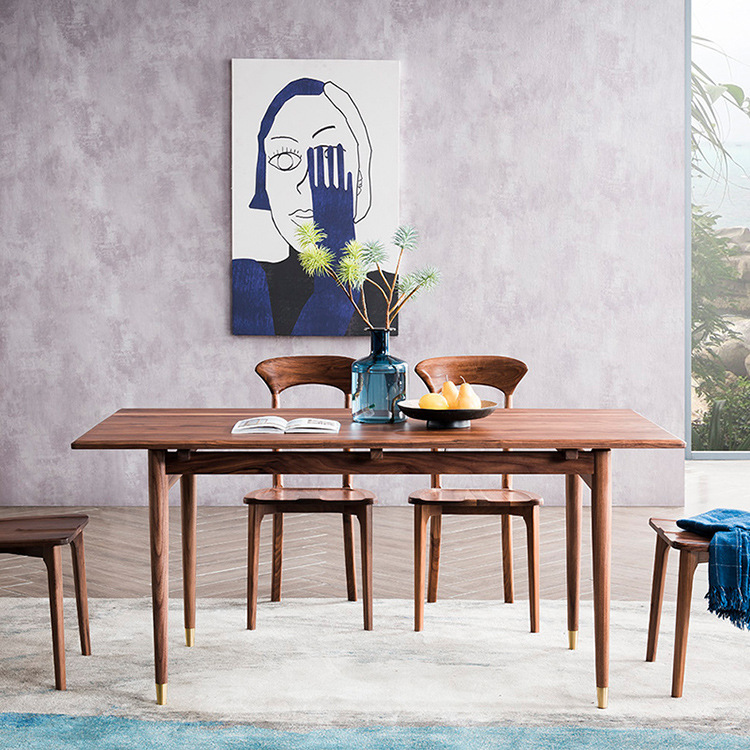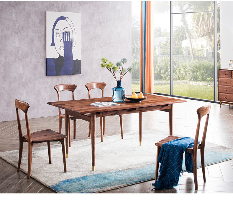 Kết hợp bàn ghế ăn bằng gỗ óc chó đen Bắc Mỹ kết hợp phong cách Nhật Bản đơn giản tại nhà nhà hàng nhẹ nhàng sang trọng Bàn ăn hoàn toàn bằng gỗ nguyên khối kiểu Bắc Âu