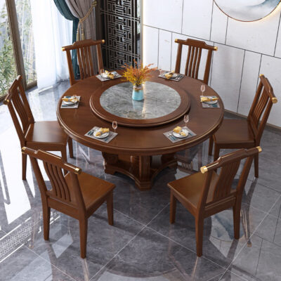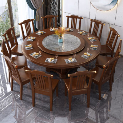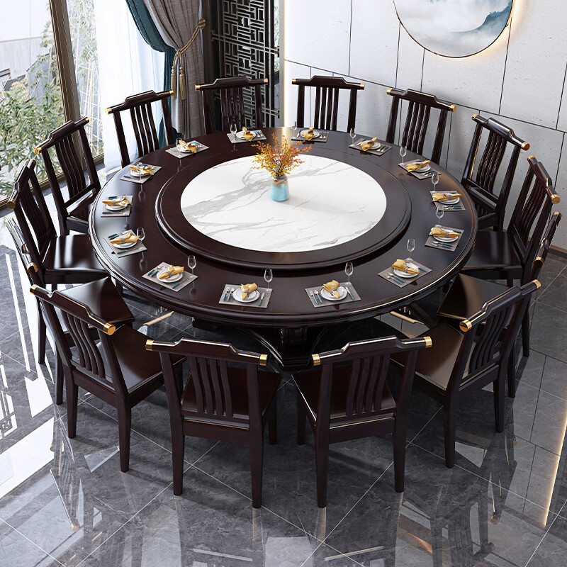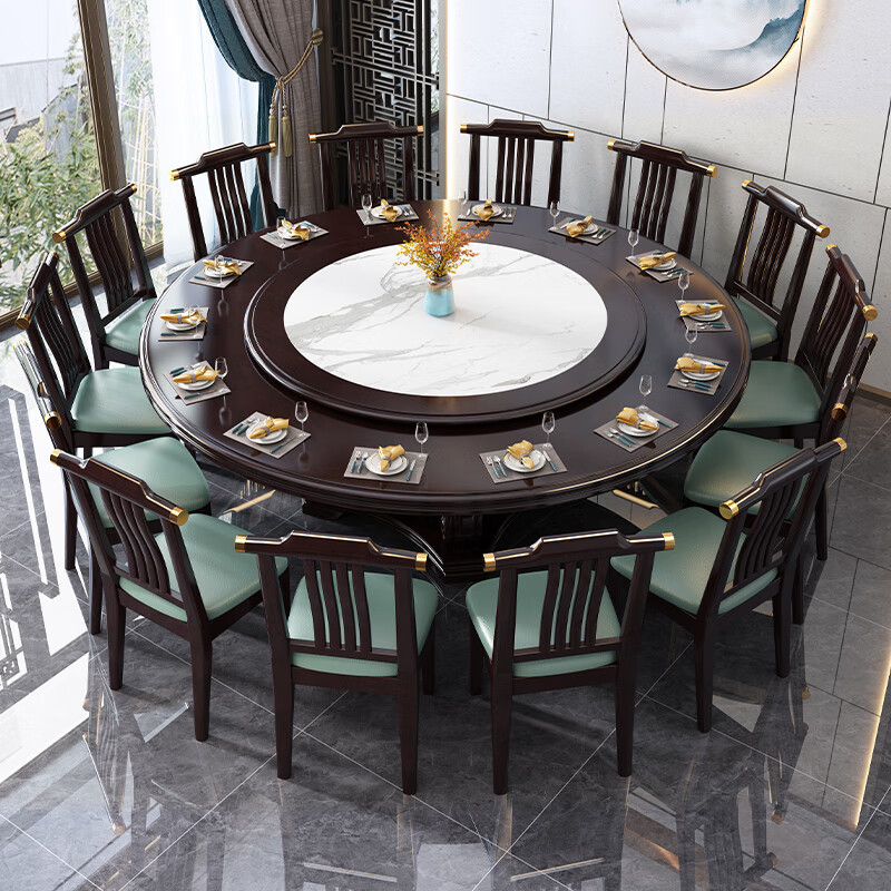 Kết hợp bàn ghế ăn gỗ nguyên khối kiểu Trung Quốc mới với bàn xoay đá phiến Bàn tròn lớn 10 người cho bàn ăn tròn tại nhà khách sạn