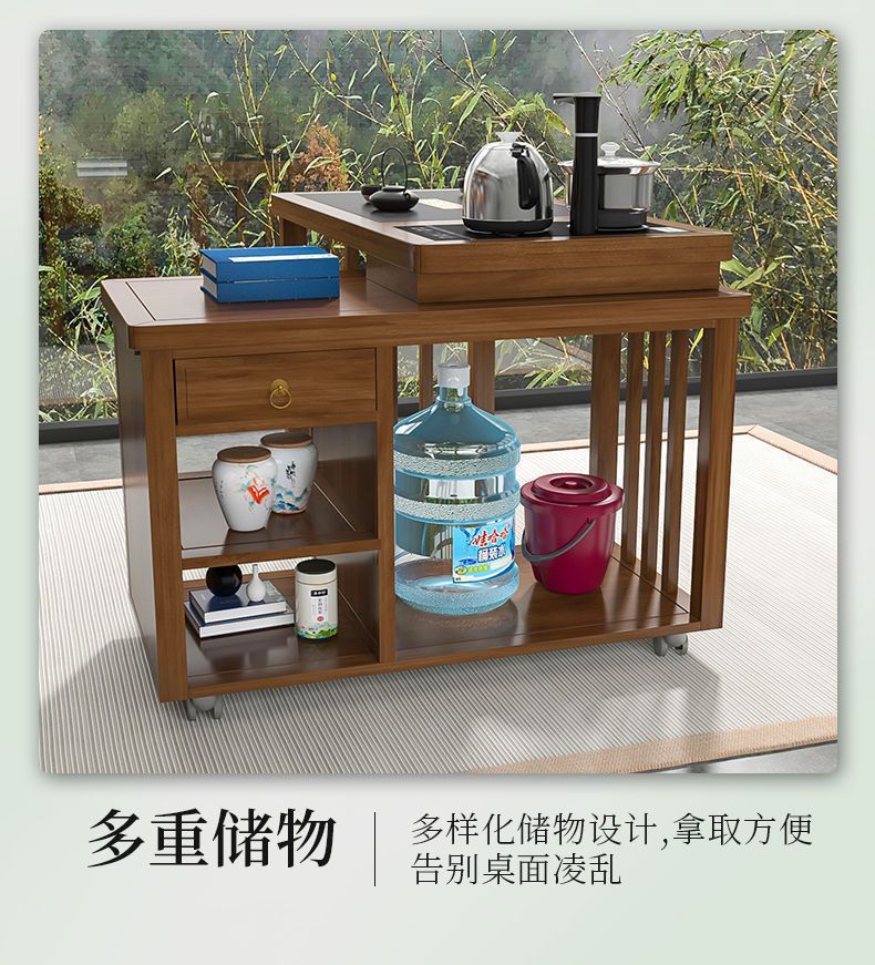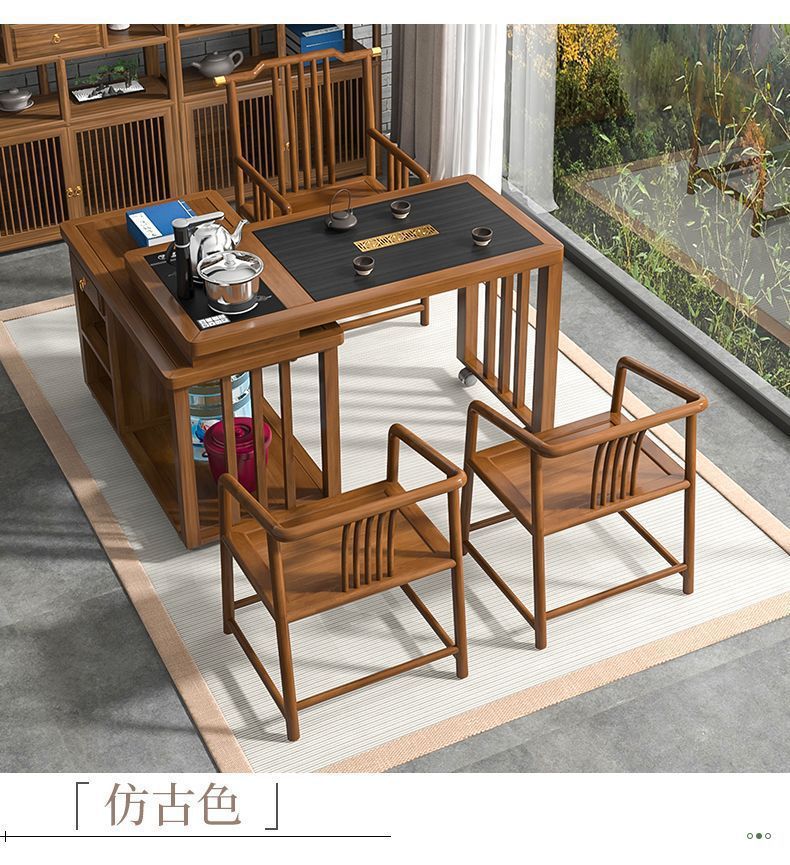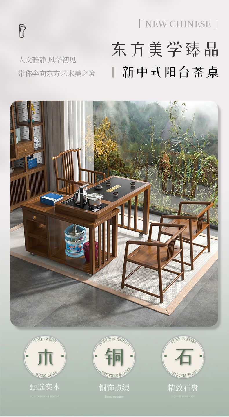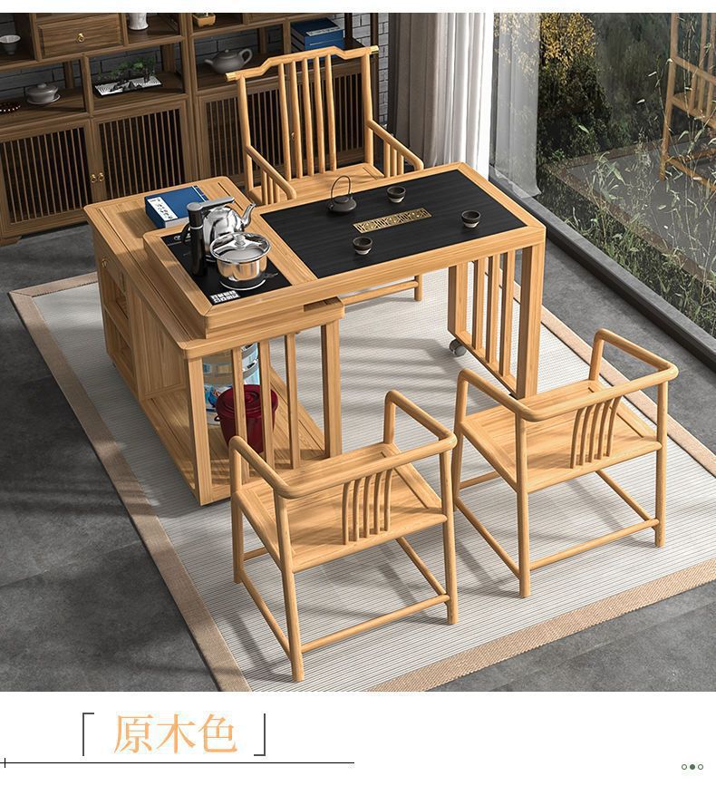 Kết hợp bàn trà gỗ nguyên khối hiện đại đơn giản có thể xoay và di chuyển Bàn trà Kung Fu ban công nhà bàn cà phê căn hộ nhỏ
