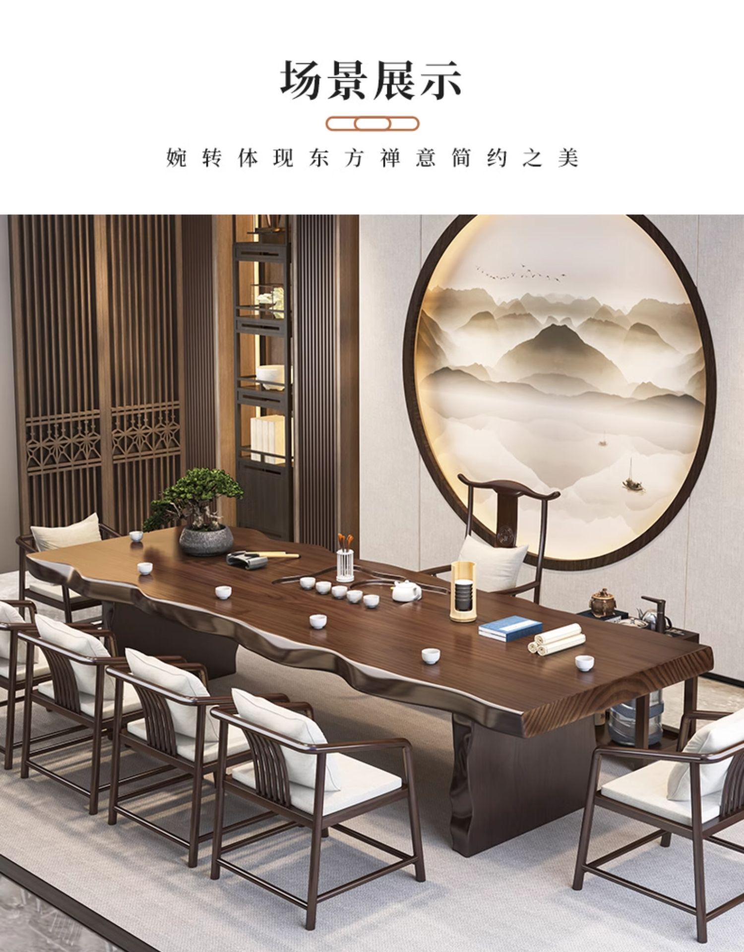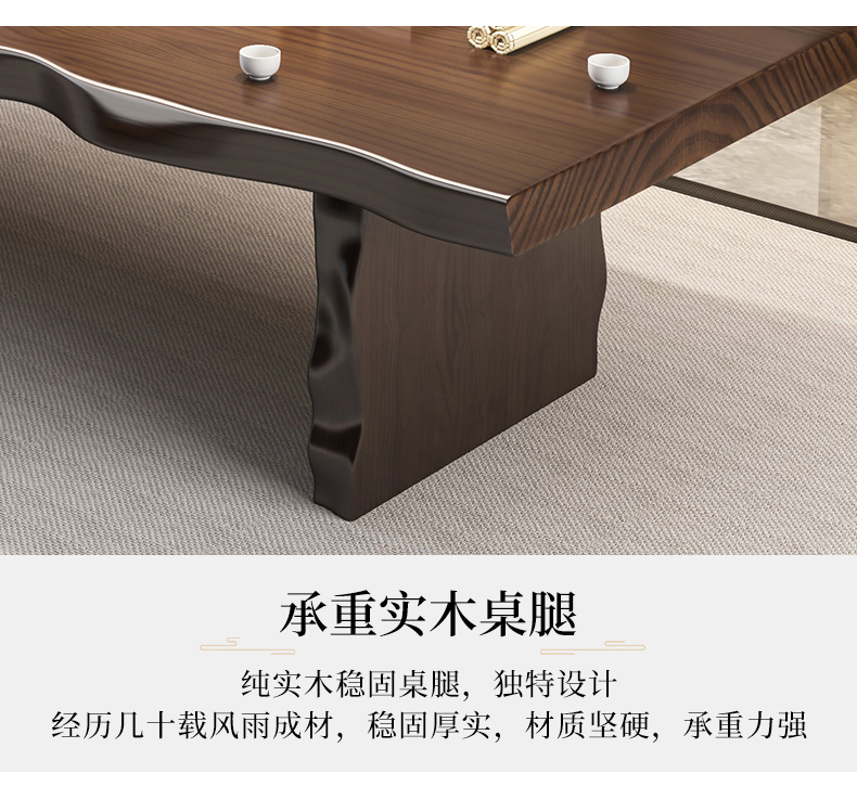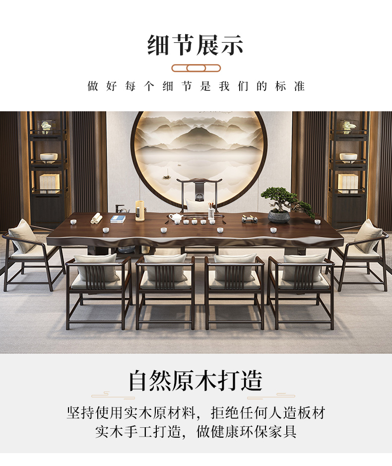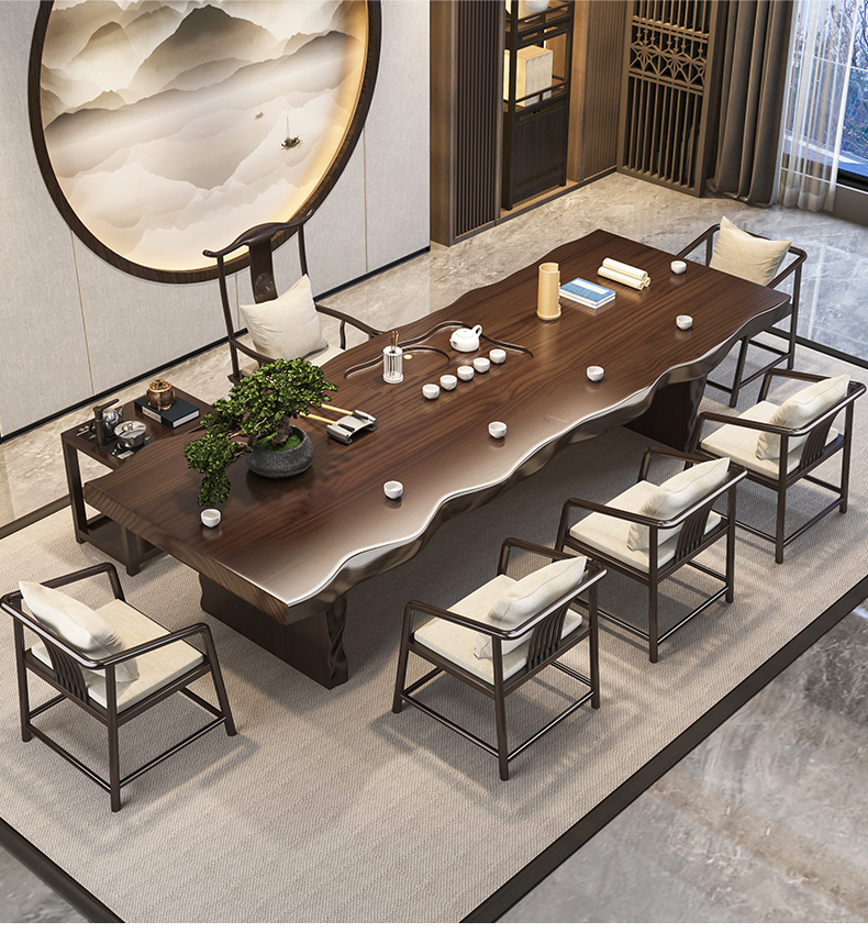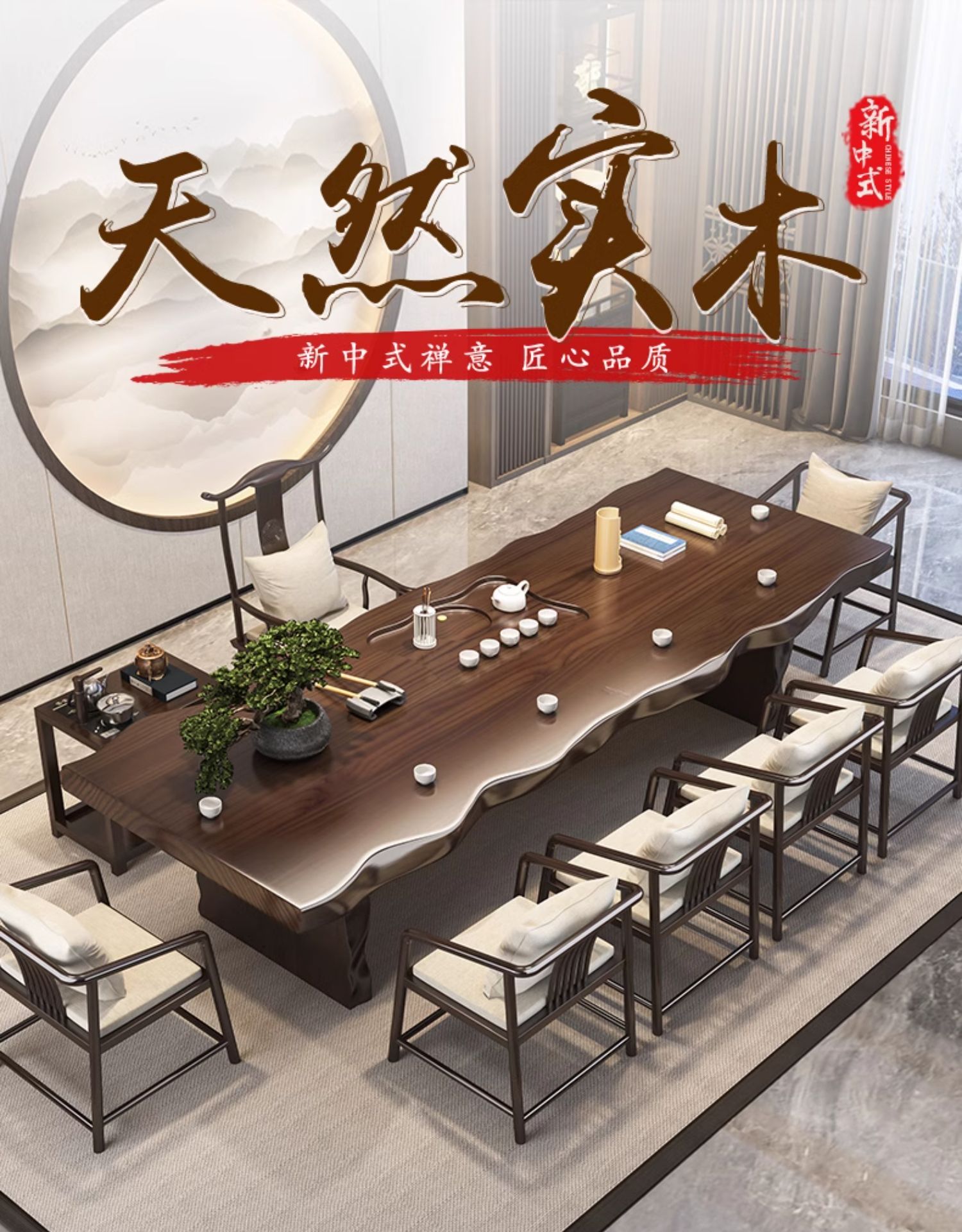 Kết hợp bàn trà gỗ nguyên khối, một bàn năm ghế, bàn trà ván lớn kiểu Trung Quốc mới, bàn trà văn phòng tại nhà đơn giản hiện đại