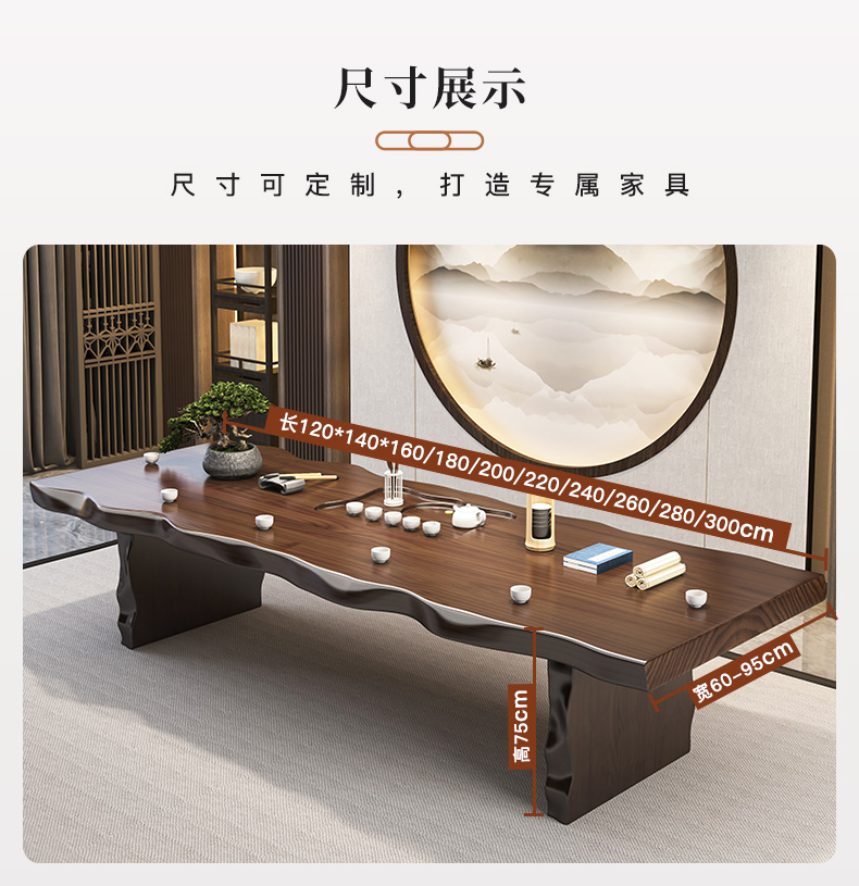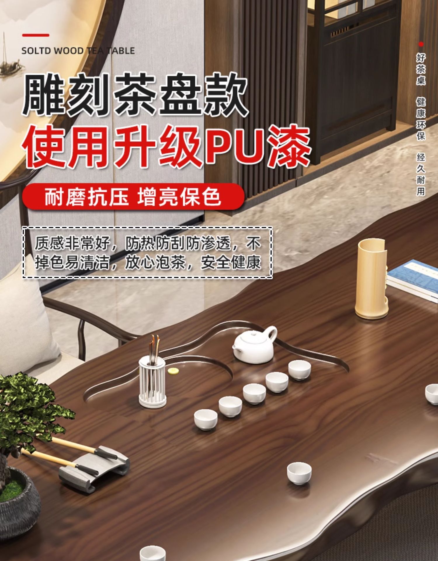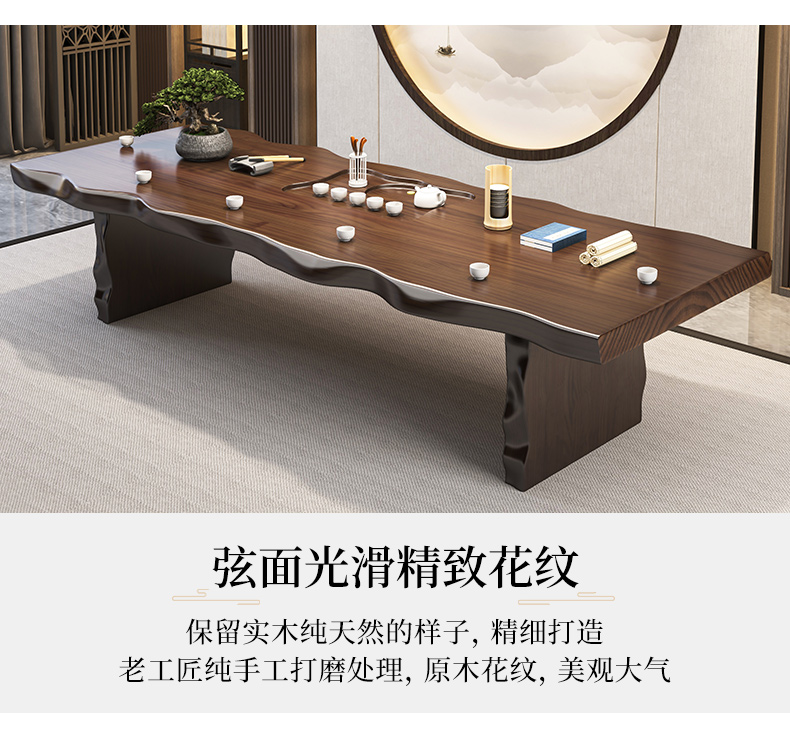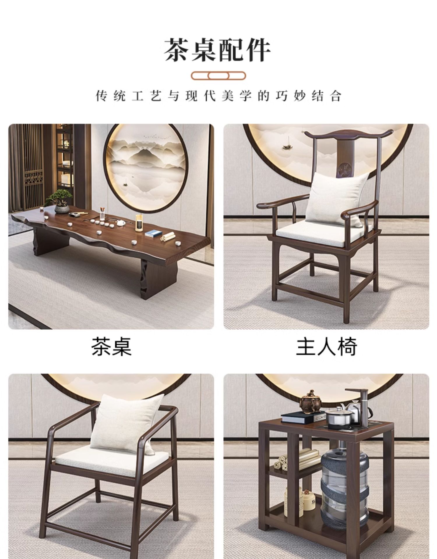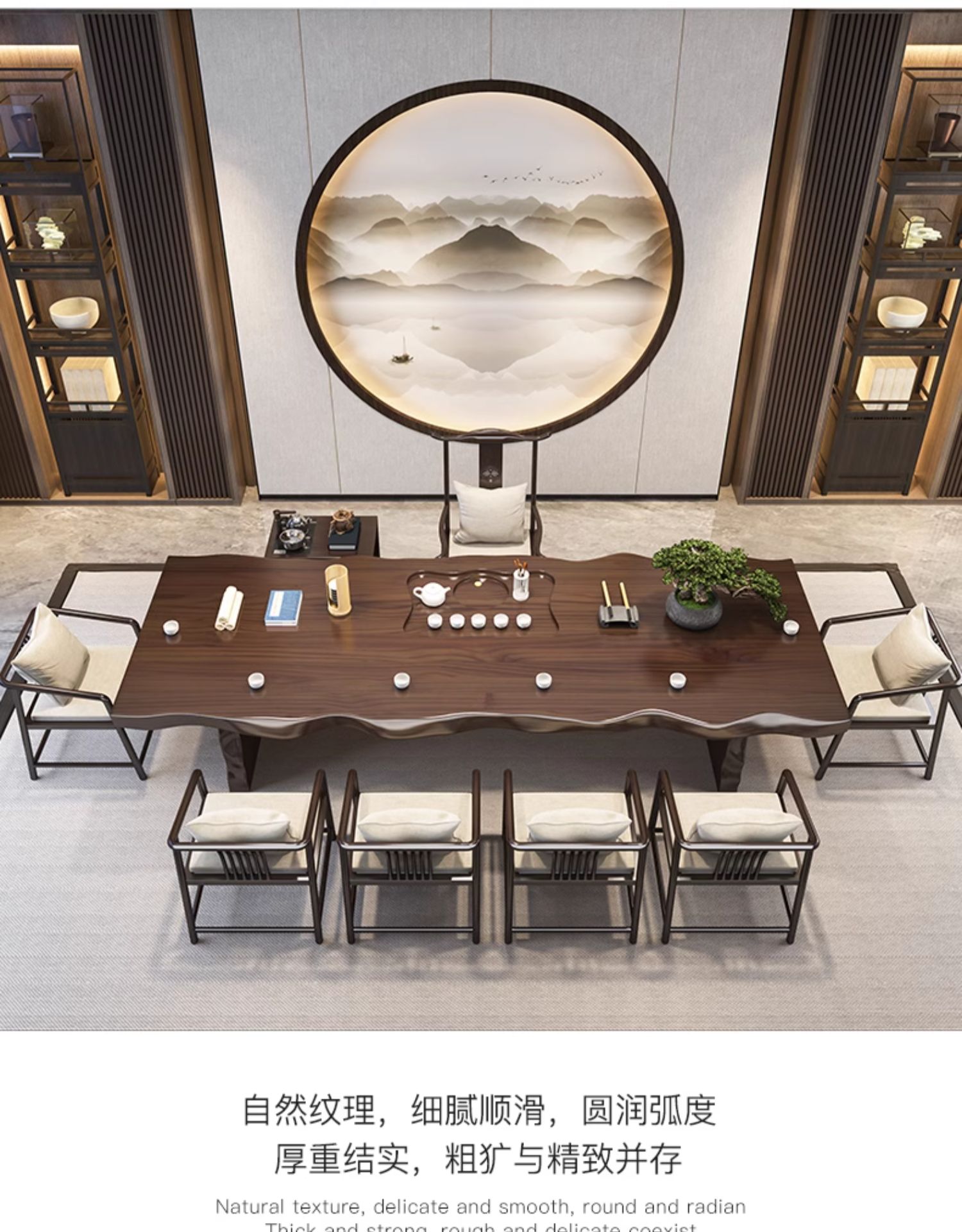 Kết hợp bàn trà gỗ nguyên khối, một bàn năm ghế, bàn trà ván lớn kiểu Trung Quốc mới, bàn trà văn phòng tại nhà đơn giản hiện đại