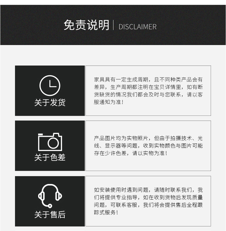 温馨提醒:家具通过物流或者快递公司运输的,有可能出 现货损情况。买家收货时,应该认真检查家具的外包装,看有没有破损,特别注意