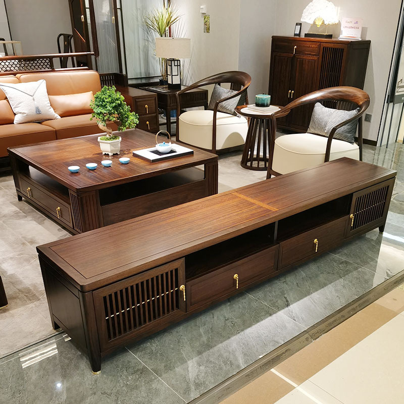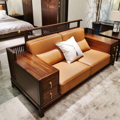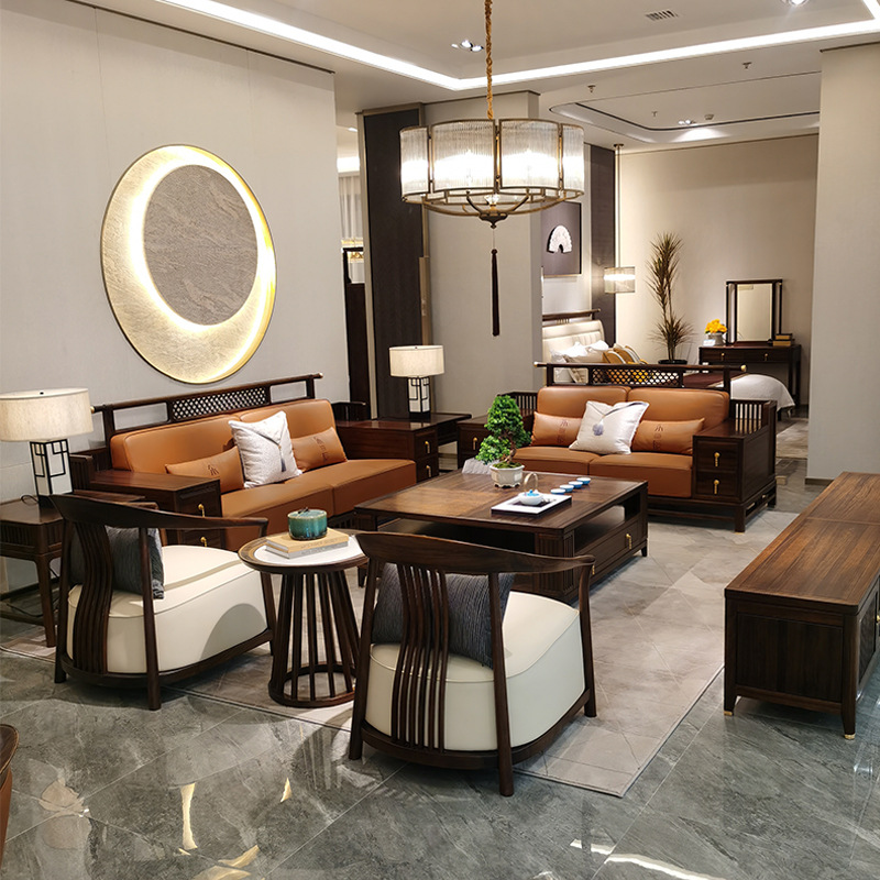 Kết hợp ghế sofa da bằng gỗ mun phong cách Trung Quốc mới biệt thự tối giản hiện đại phòng khách cỡ lớn tất cả đồ nội thất cao cấp bằng gỗ nguyên khối