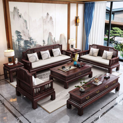 Kết hợp ghế sofa gỗ cổ điển mới của Trung Quốc Phòng khách đơn giản hiện đại Nội thất gia đình lớn và nhỏ Kết hợp ghế sofa gỗ mun
