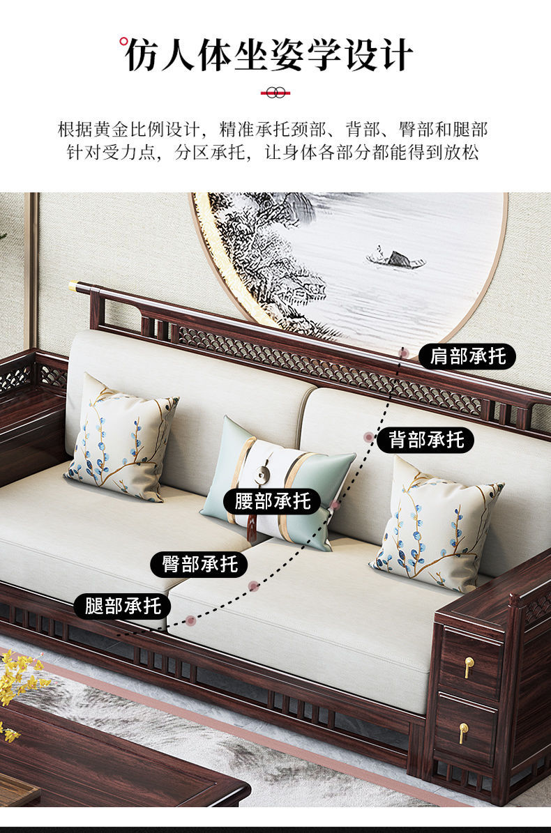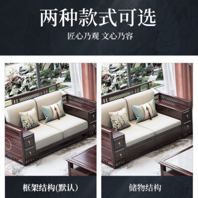 Kết hợp ghế sofa gỗ nguyên khối bằng gỗ mun kiểu Trung Quốc mới kết hợp lưu trữ quy mô lớn ghế sofa phòng khách tại nhà phong cách Trung Quốc mùa đông và mùa hè hai công dụng