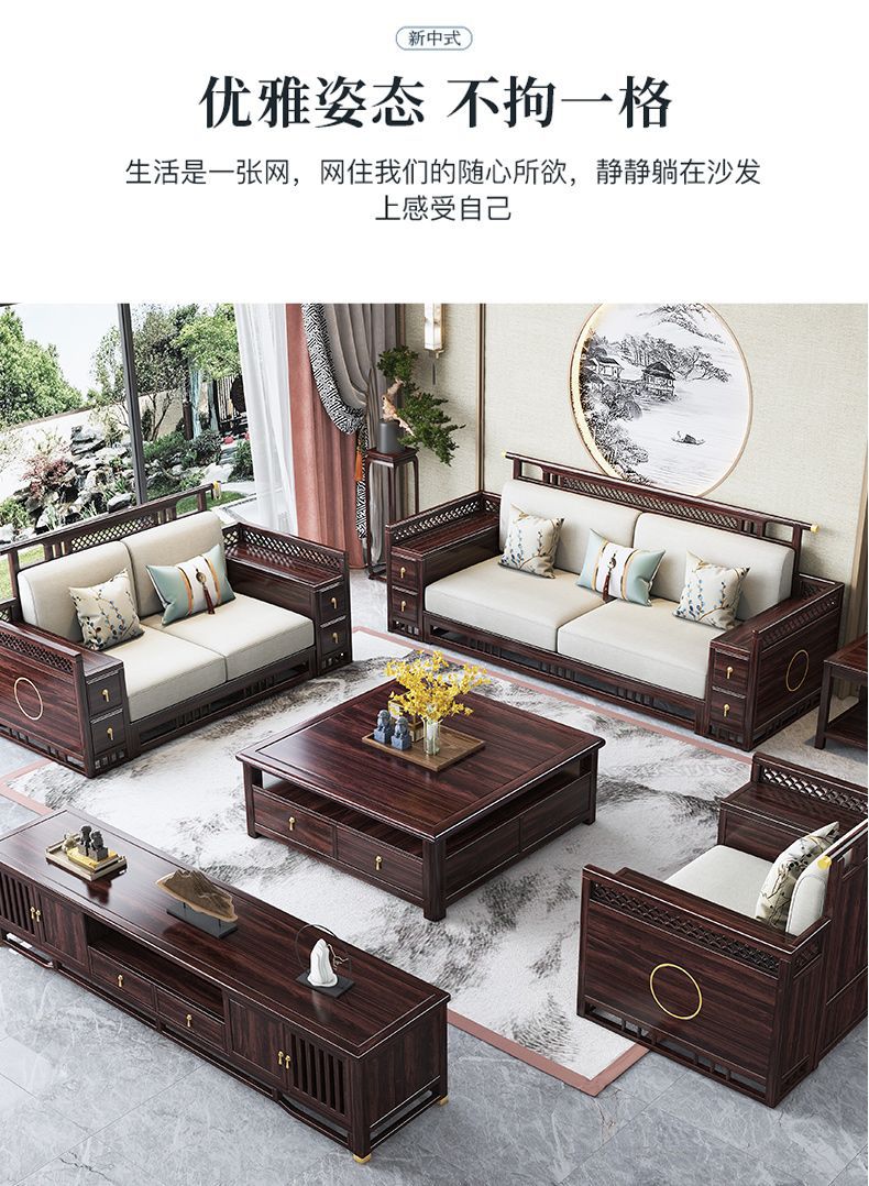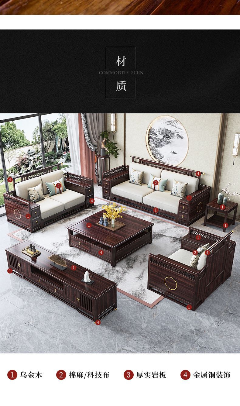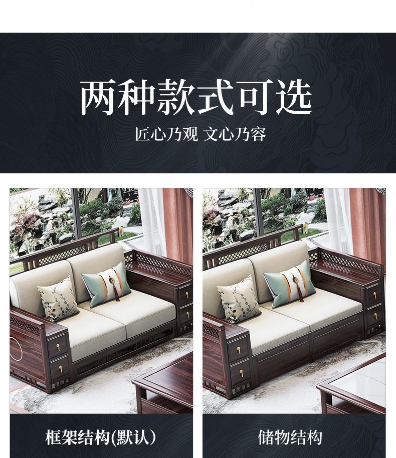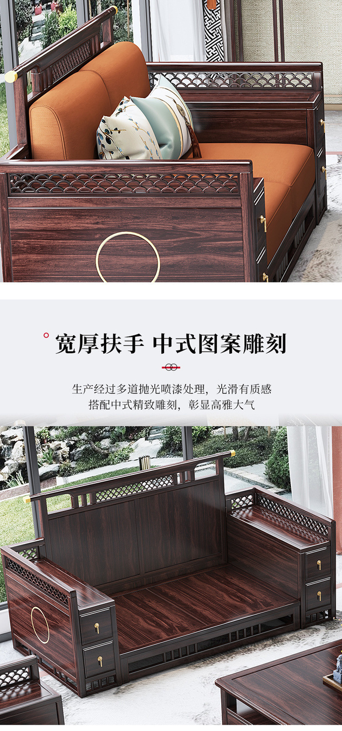 Kết hợp ghế sofa gỗ nguyên khối bằng gỗ mun kiểu Trung Quốc mới kết hợp lưu trữ quy mô lớn ghế sofa phòng khách tại nhà phong cách Trung Quốc mùa đông và mùa hè hai công dụng