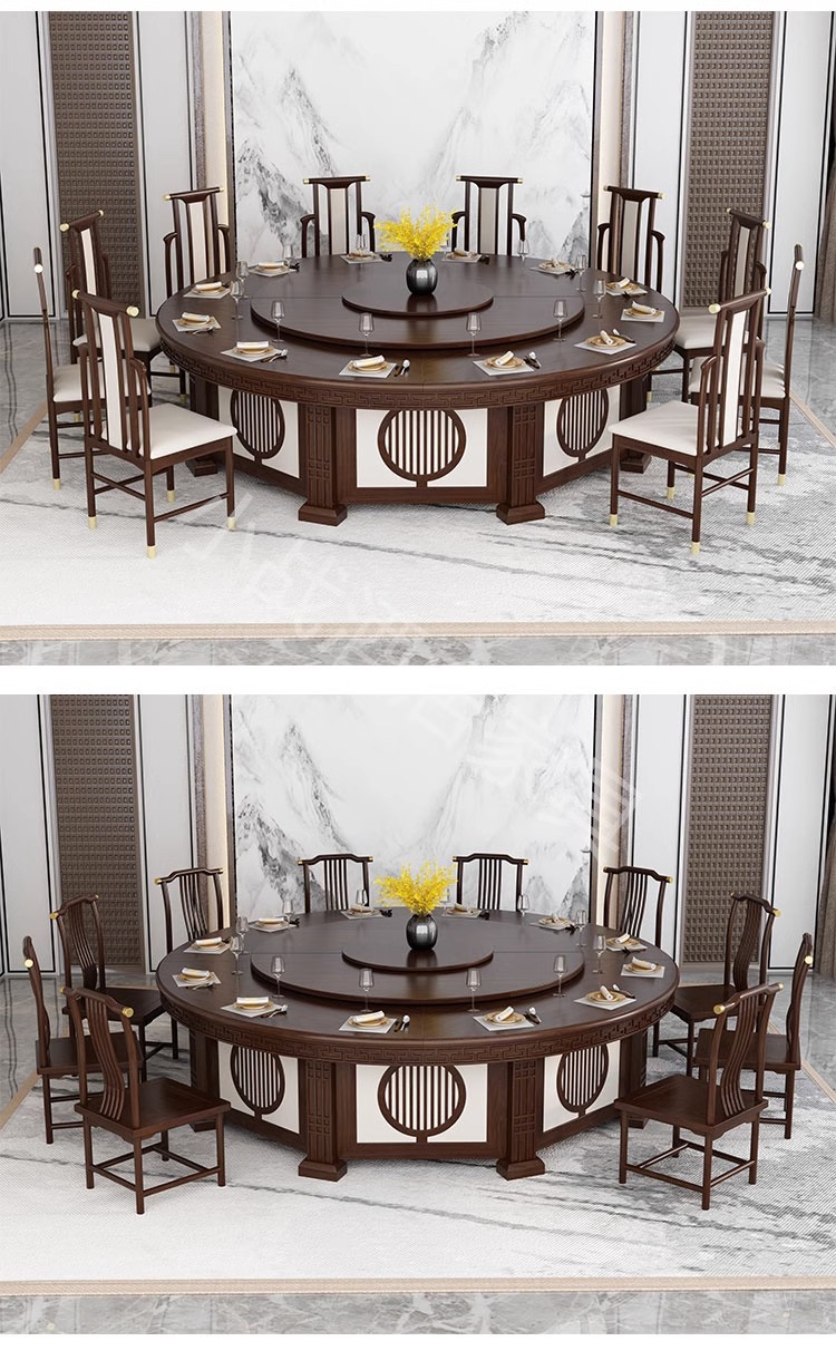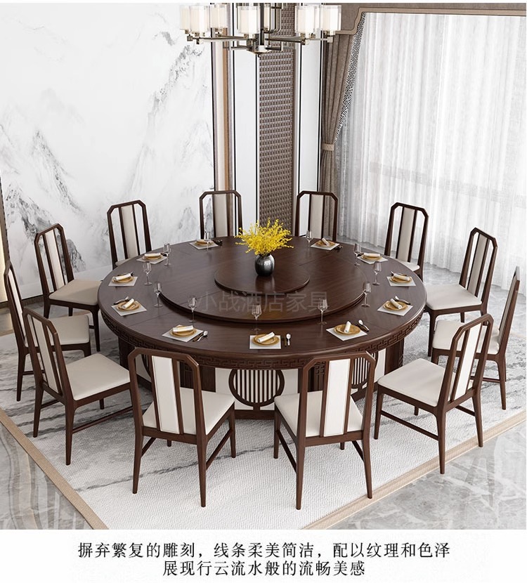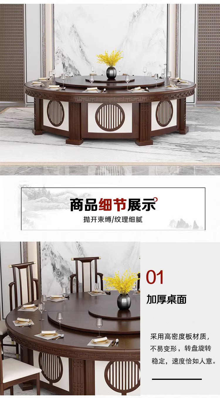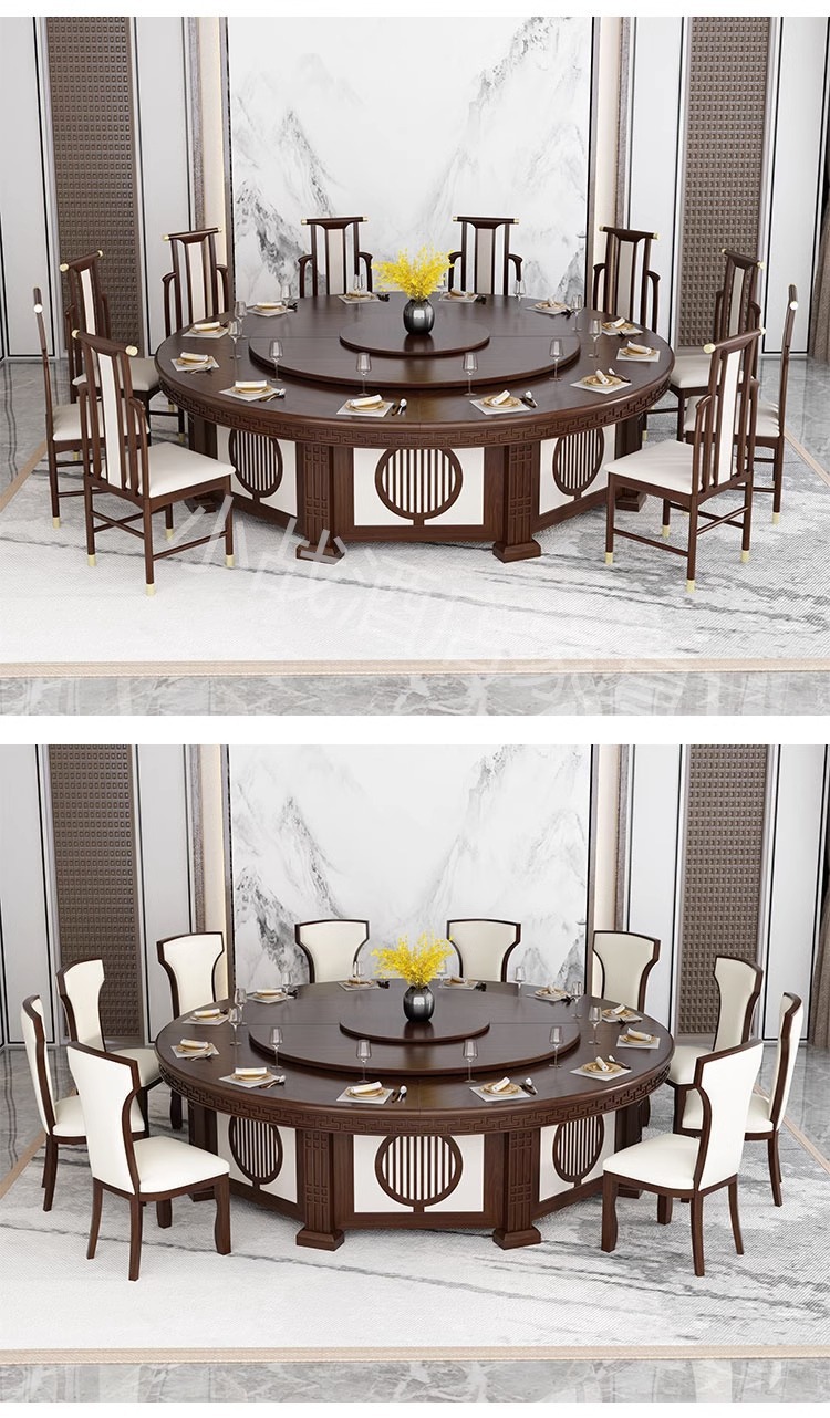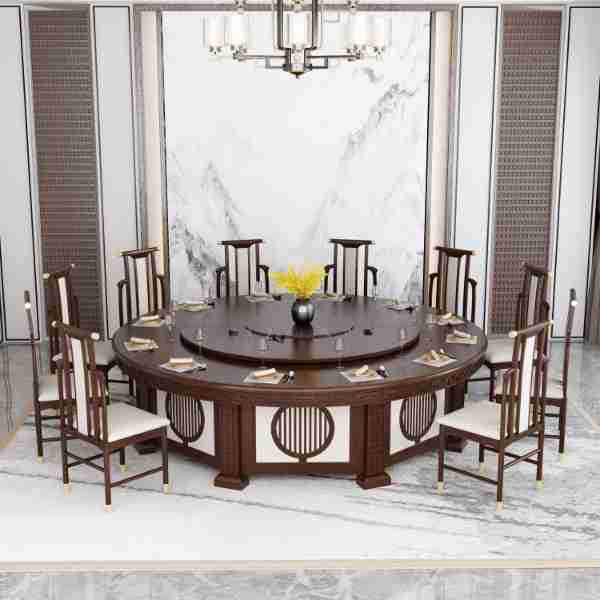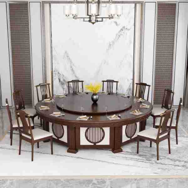 Khách sạn bàn ăn xoay tự động kiểu Trung Quốc mới bàn tròn lớn nhà hàng khách sạn bàn ăn lớn 15 người 20 người bàn ghế hộp