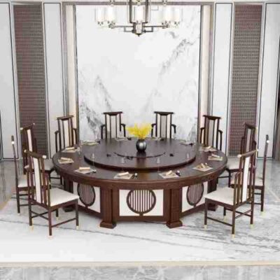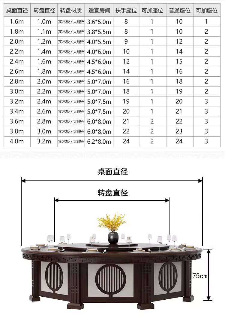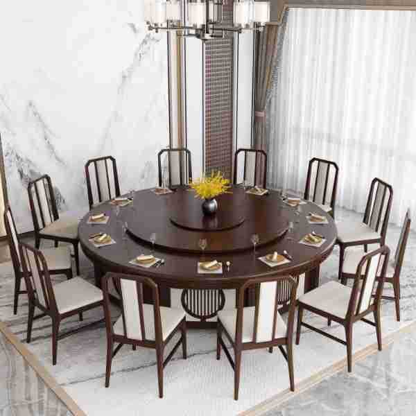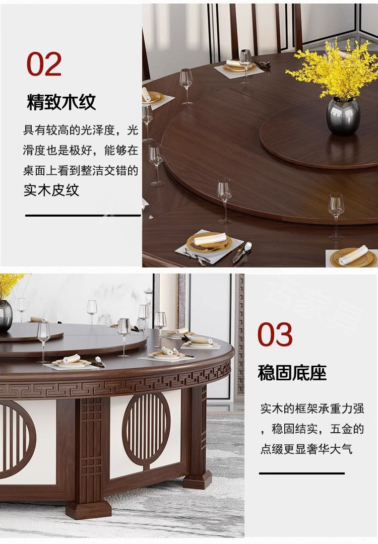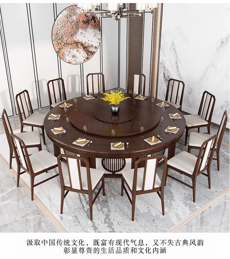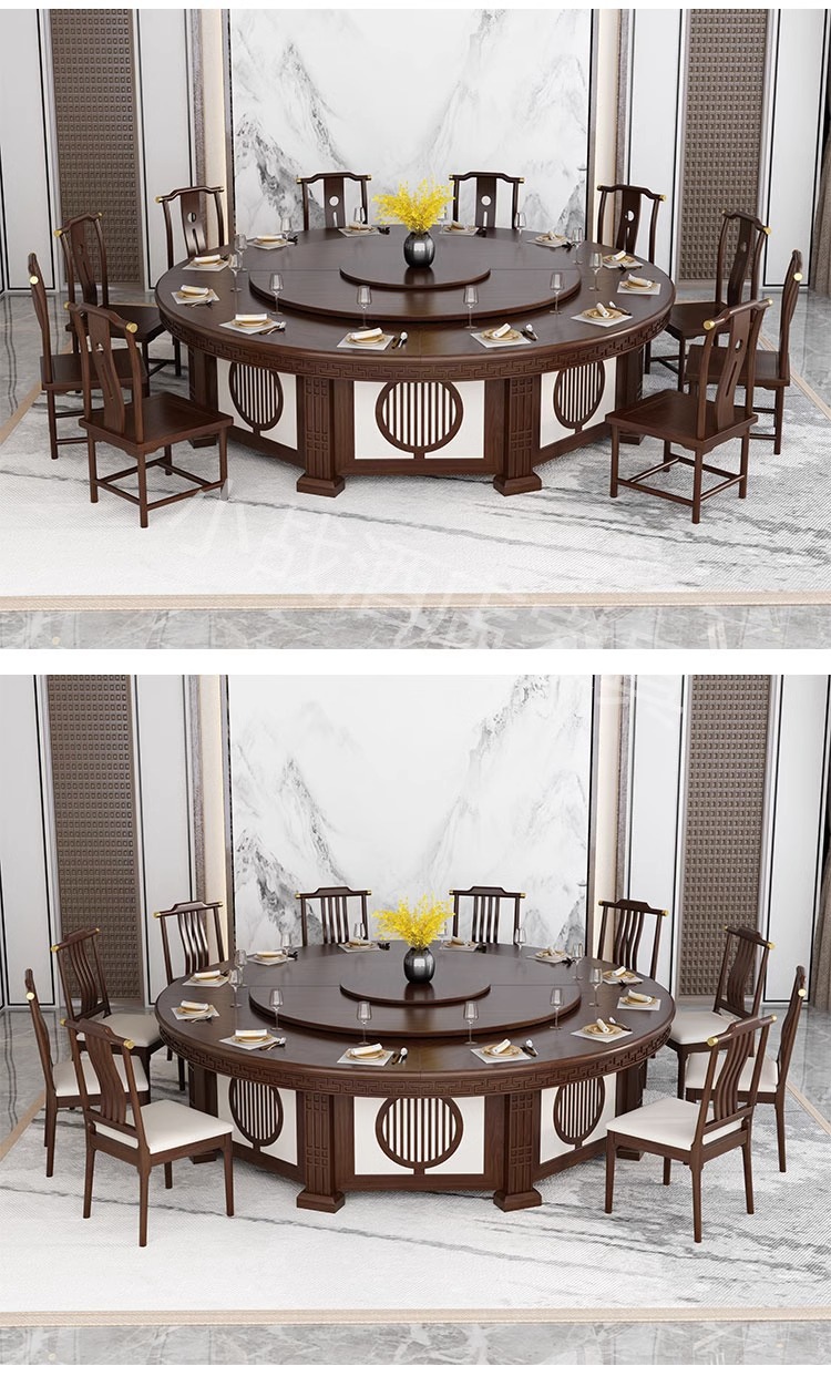 Khách sạn bàn ăn xoay tự động kiểu Trung Quốc mới bàn tròn lớn nhà hàng khách sạn bàn ăn lớn 15 người 20 người bàn ghế hộp