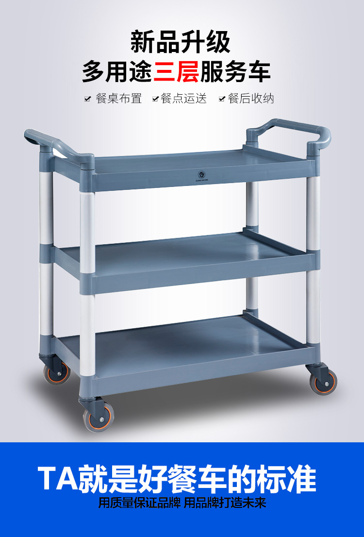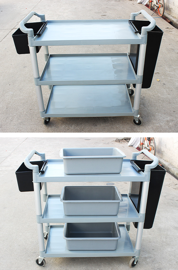 Khách sạn bát xe gom xe nhà hàng xe đẩy nhựa ba lớp đa chức năng phục vụ tài xế đẩy xe ăn
