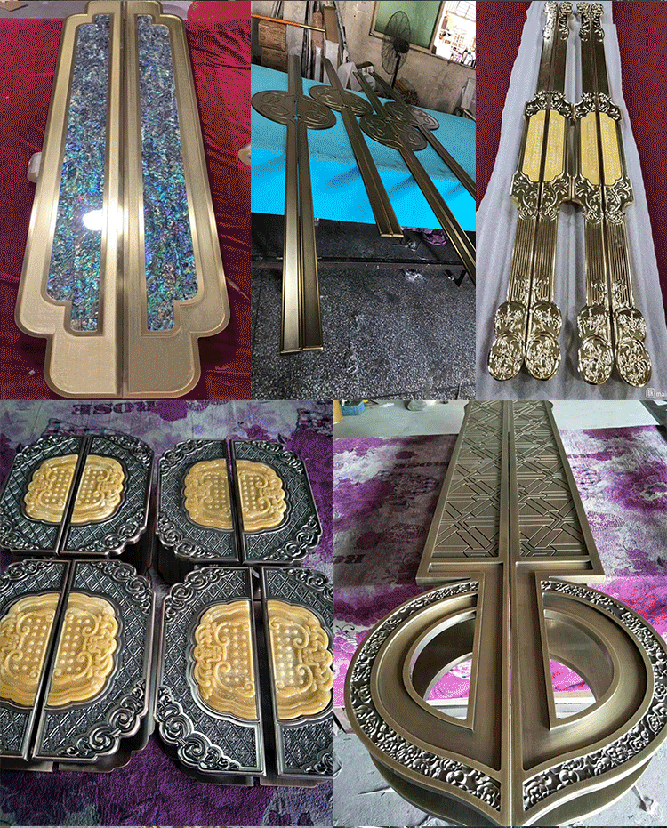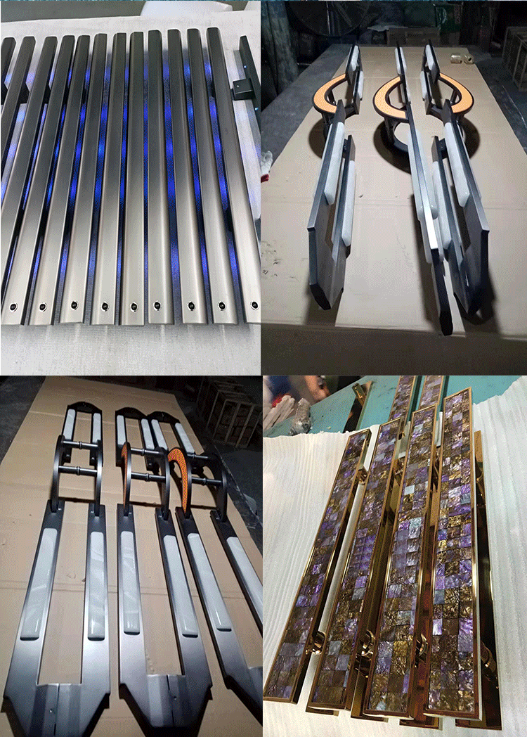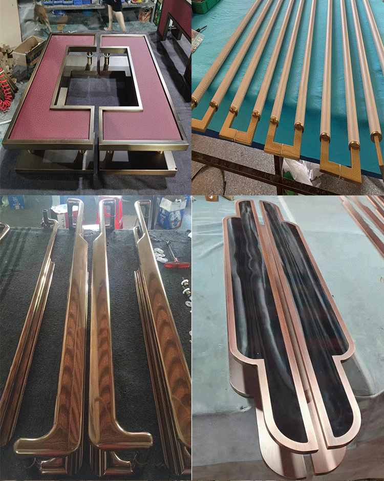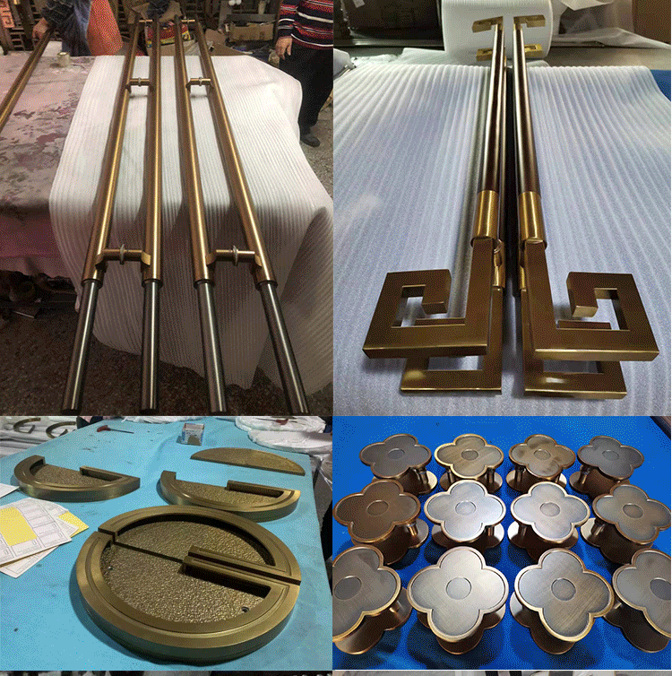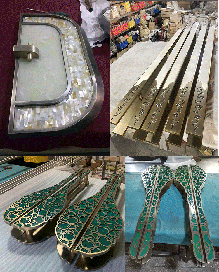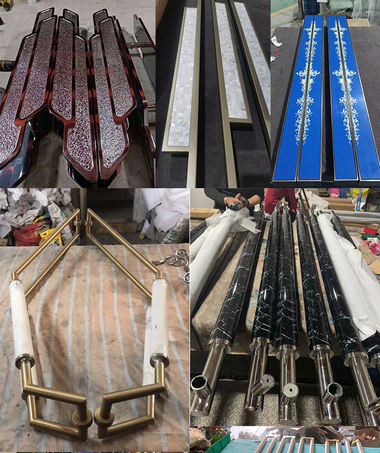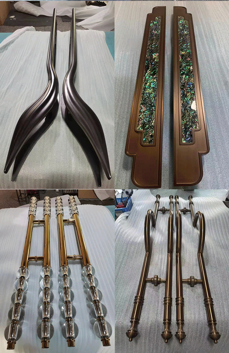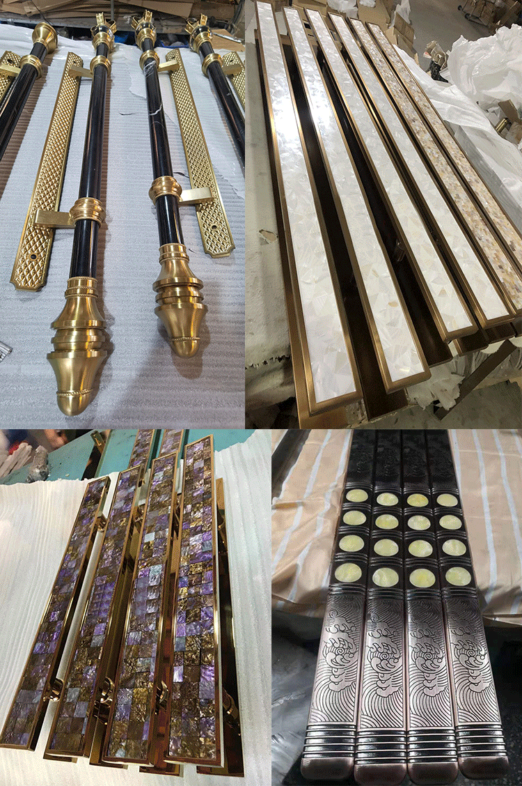 Khách sạn cao cấp tùy chỉnh Tay nắm cửa kính bằng thép không gỉ của Trung Quốc bằng đồng cổ trượt cửa đôi bằng gỗ rắn tay nắm