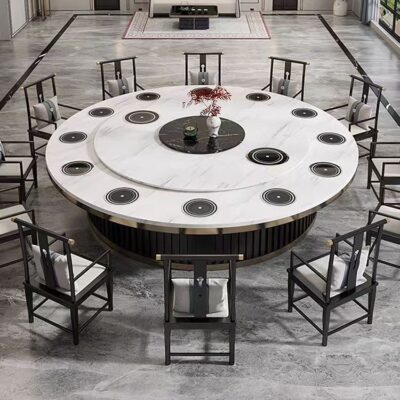 Khách sạn điện bàn tròn lớn đá tấm ánh sáng nhà hàng sang trọng 15 người 20 người hộp câu lạc bộ biệt thự khách sạn bàn lẩu
