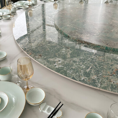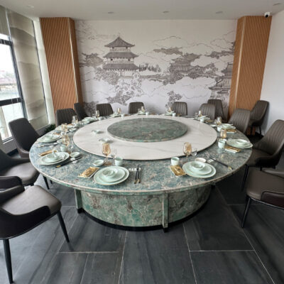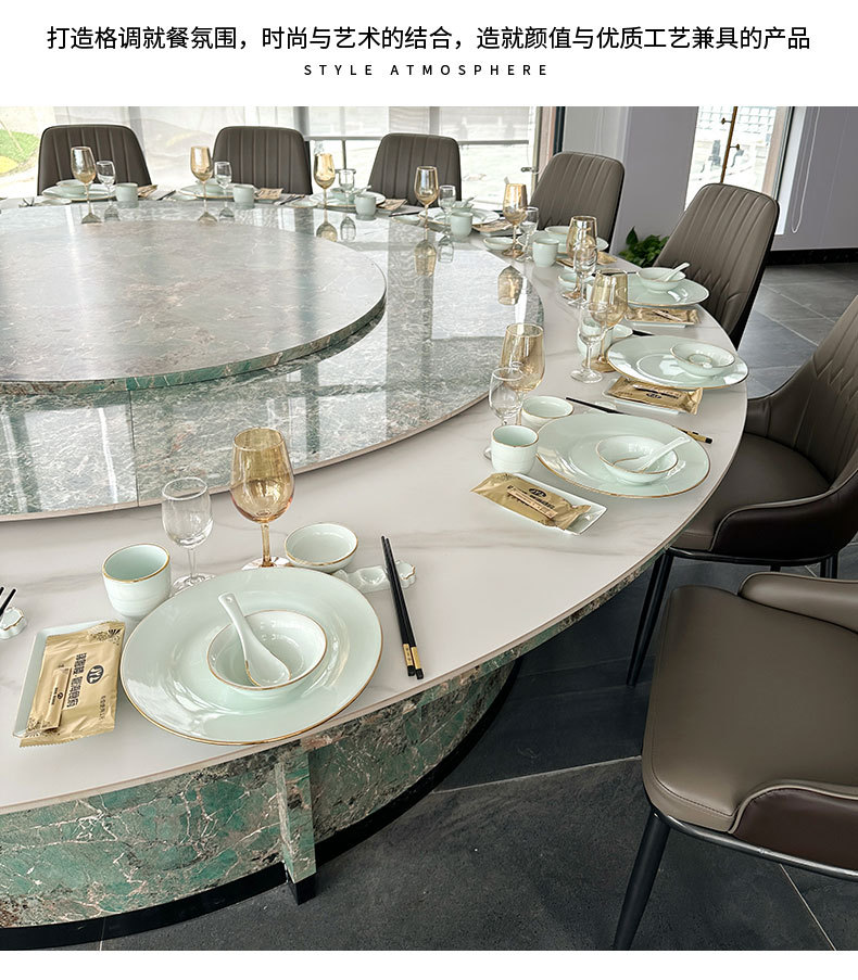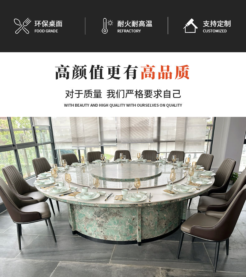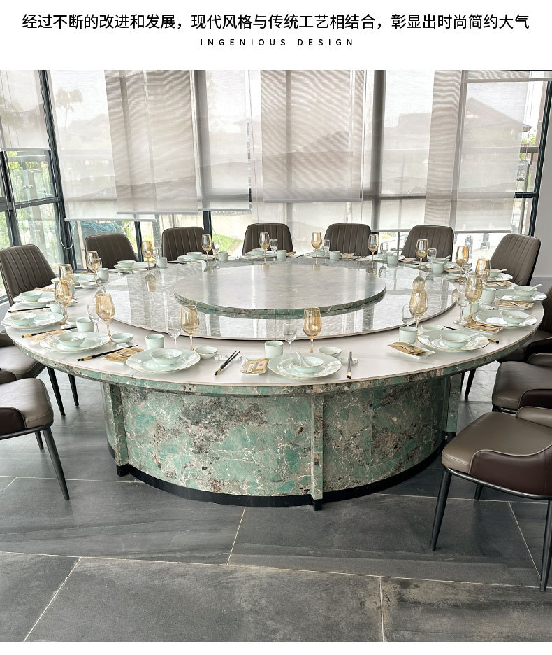 Khách sạn đơn giản hiện đại mới theo phong cách Trung Quốc bàn ăn bàn xoay tự động nhà hàng khách sạn đá phiến bàn tròn lớn bằng gỗ nguyên khối