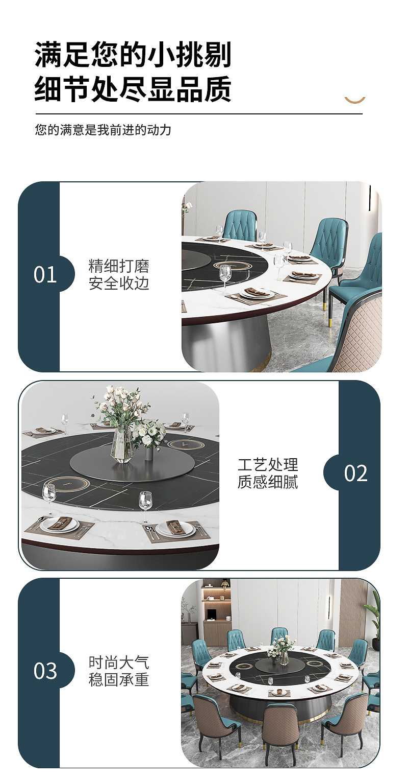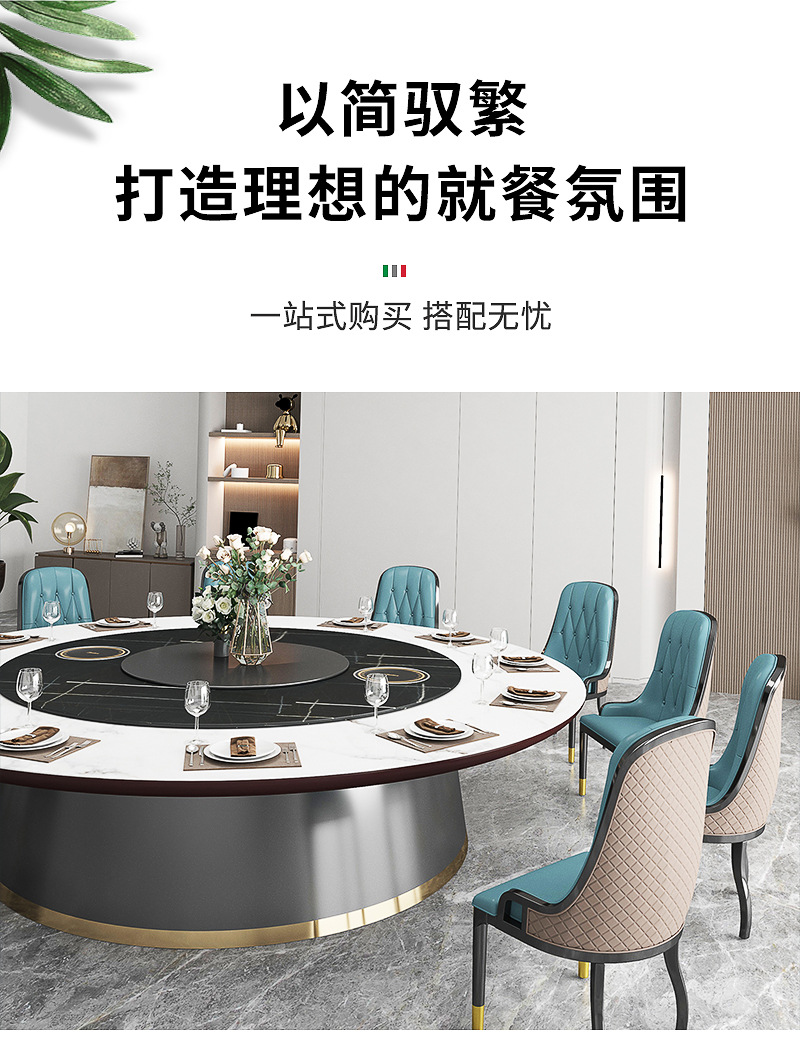 Khách sạn đơn giản sang trọng bàn ăn điện tấm đá xoay tự động với bếp từ bàn tròn lớn bàn lẩu gỗ đặc cho 20 người là sản phẩm nổi bật trong dòng bàn ăn nhập khẩu, thiết kế hiện đại và sang trọng, phù hợp với nhiều không gian nội thất cao cấp.