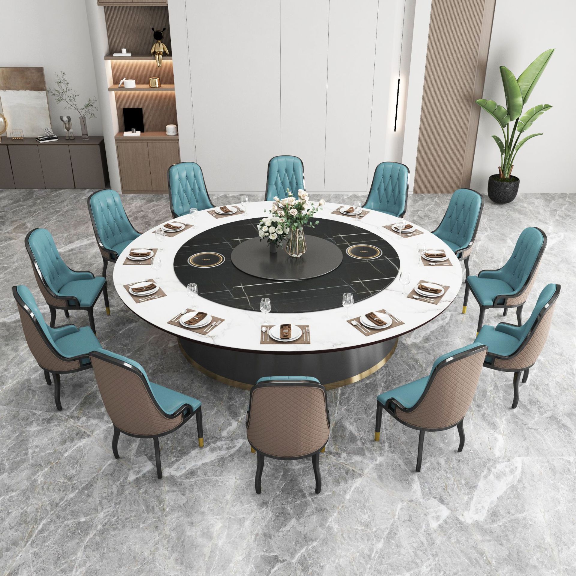 Khách sạn đơn giản sang trọng bàn ăn điện tấm đá xoay tự động với bếp từ bàn tròn lớn bàn lẩu gỗ đặc cho 20 người