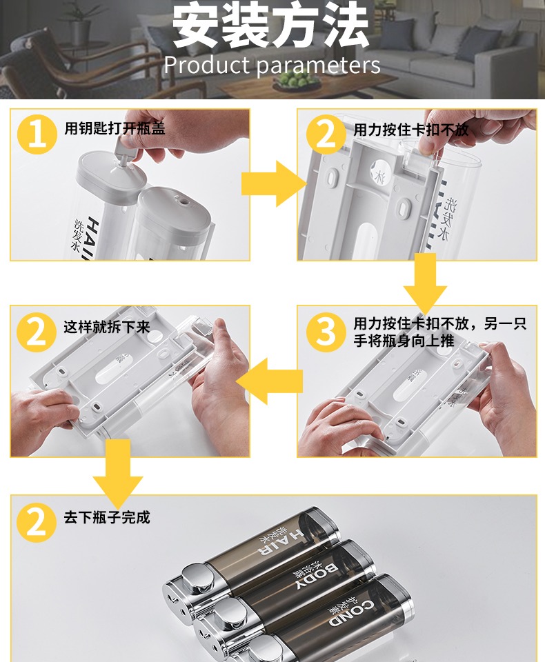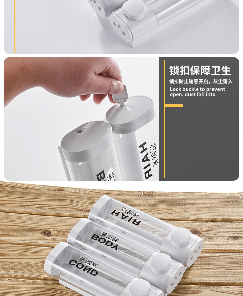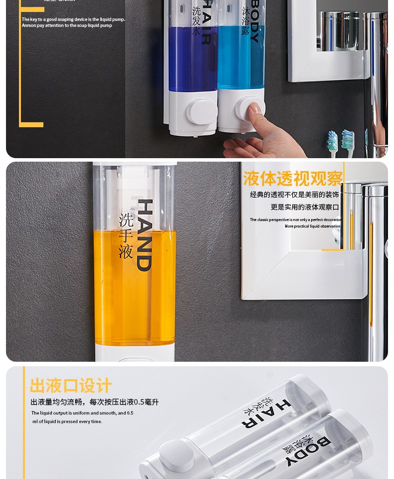 Sản phẩm nổi bật với các tính năng: Khách sạn đựng xà phòng không đục lỗ phòng tắm ba đầu hộp sữa tắm treo tường nút dầu gội khử trùng tay. Quý khách có nhu cầu mua Máy rửa tay nhập khẩu vui lòng liên hệ với chúng tôi để được tư vấn hỗ trợ. Dịch vụ mua hàng Trung Quốc sẽ hỗ trợ quý khách mua hàng từ nhà cung cấp và giao tới tận tay quý khách hàng..