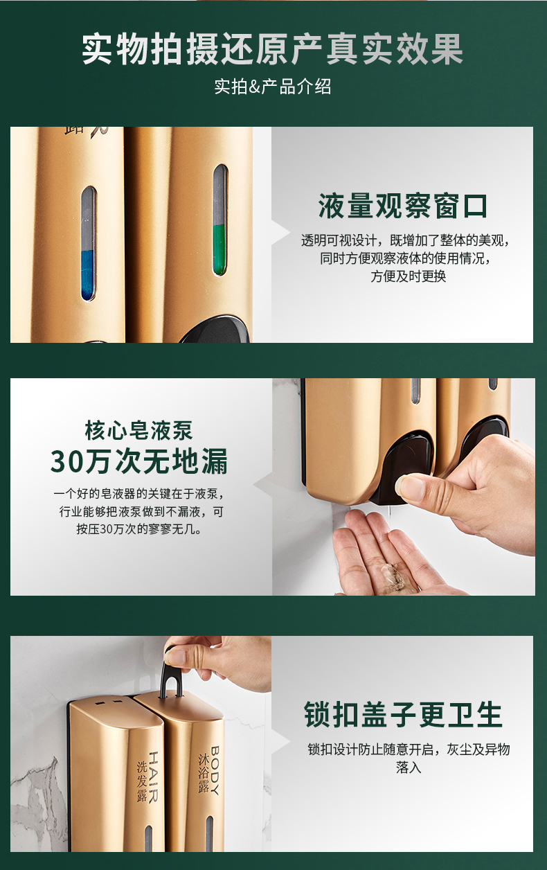 Sản phẩm nổi bật với các tính năng: Khách sạn đựng xà phòng rửa tay diệt khuẩn bấm chai sữa tắm khách sạn hộp 3 đầu treo tường không đục lỗ treo tường hộ gia đình. Quý khách có nhu cầu mua Máy rửa tay nhập khẩu vui lòng liên hệ với chúng tôi để được tư vấn hỗ trợ. Dịch vụ mua hàng Trung Quốc sẽ hỗ trợ quý khách mua hàng từ nhà cung cấp và giao tới tận tay quý khách hàng..
