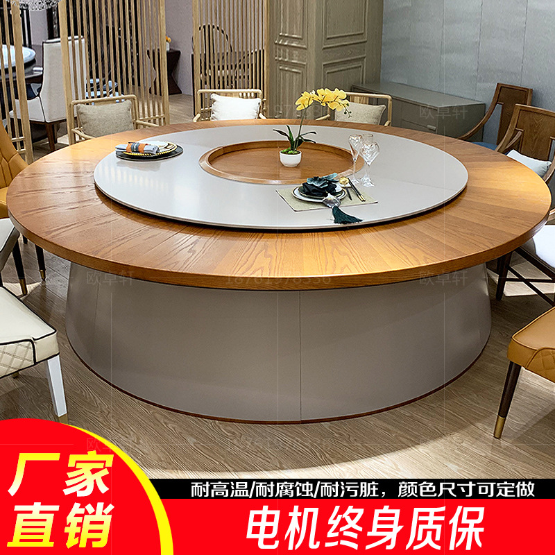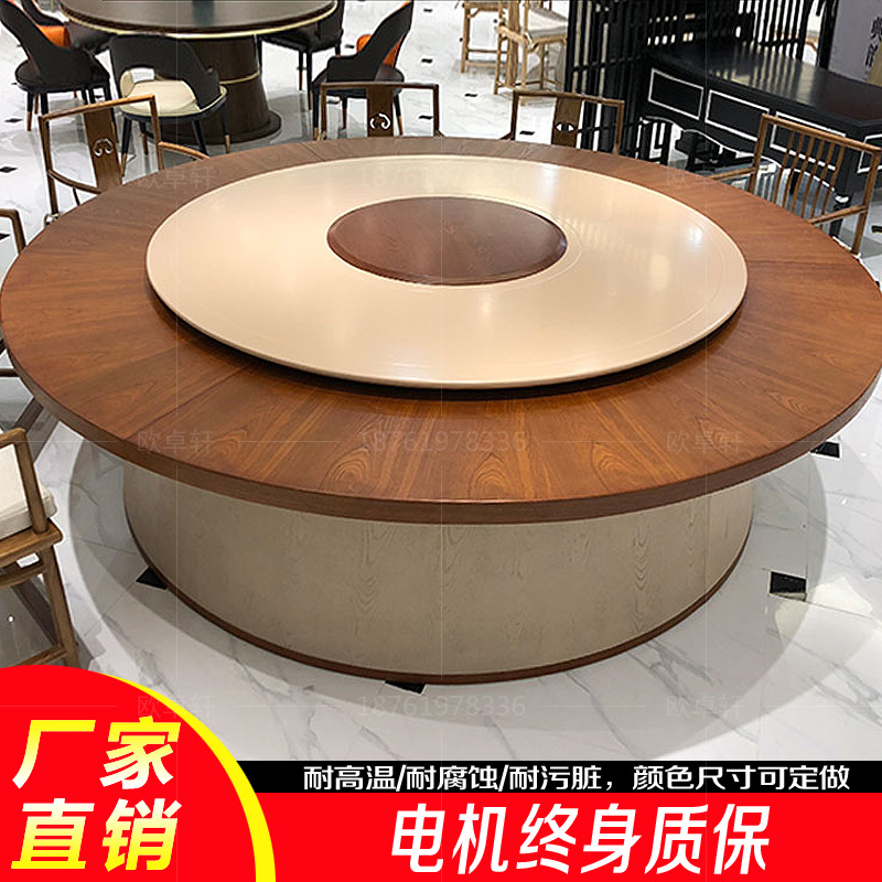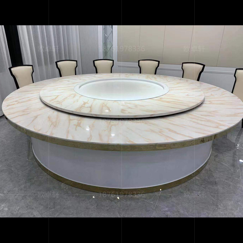 Khách sạn giả đá cẩm thạch bàn xoay tự động tròn lớn 2,8 mét Bàn lẩu 30 người Bàn ăn tròn xoay tự động kiểu Trung Quốc mới