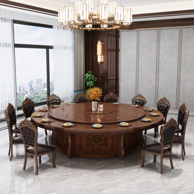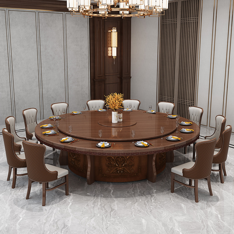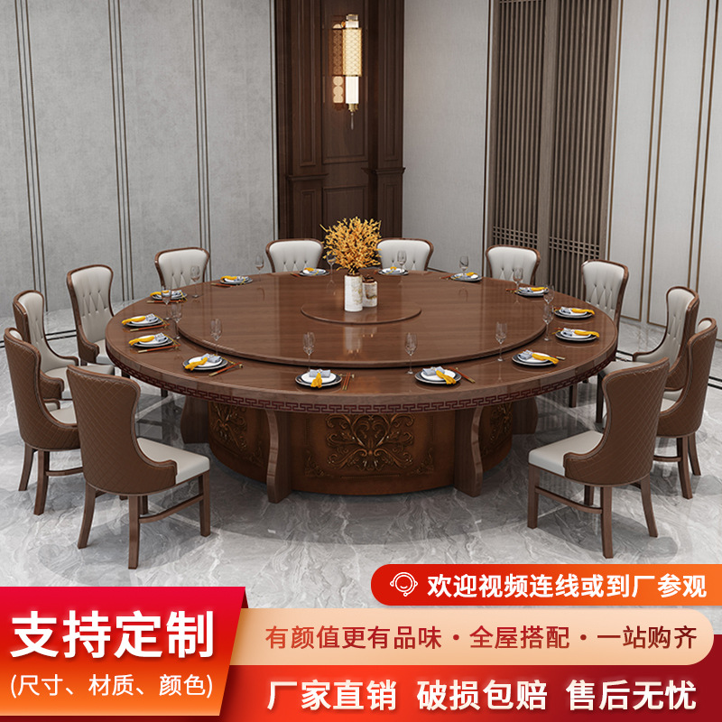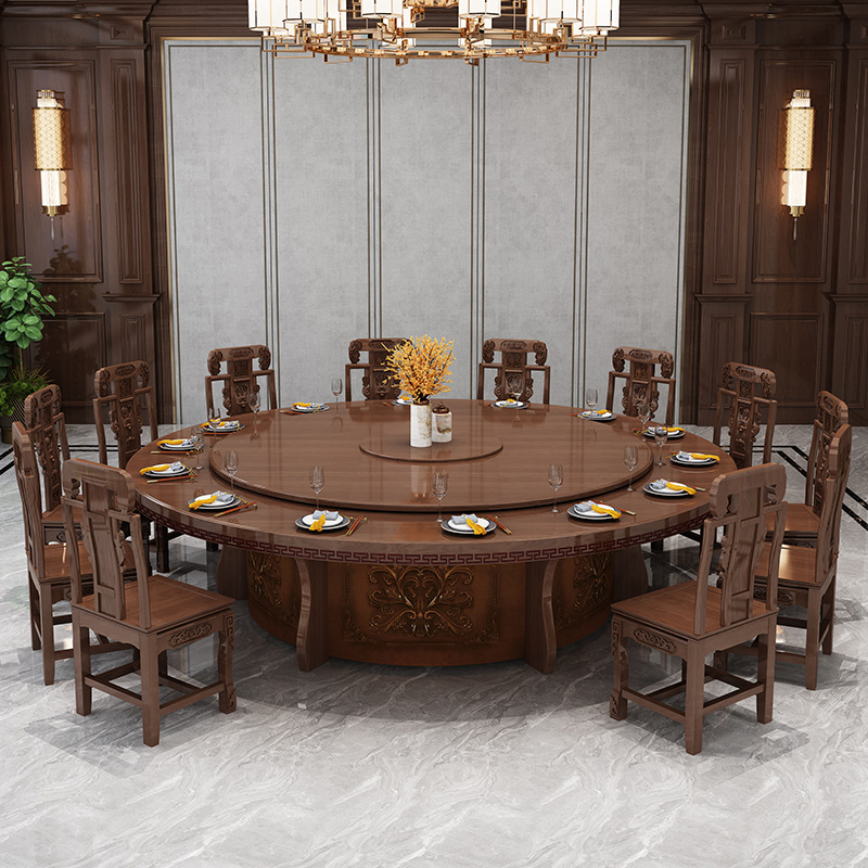 Khách sạn gỗ nguyên khối xoay tự động bàn tròn lớn tiệc nhà hàng hộp phong cách Trung Quốc mới chạm khắc xoay tự động bàn ăn tròn bàn ăn tròn lớn